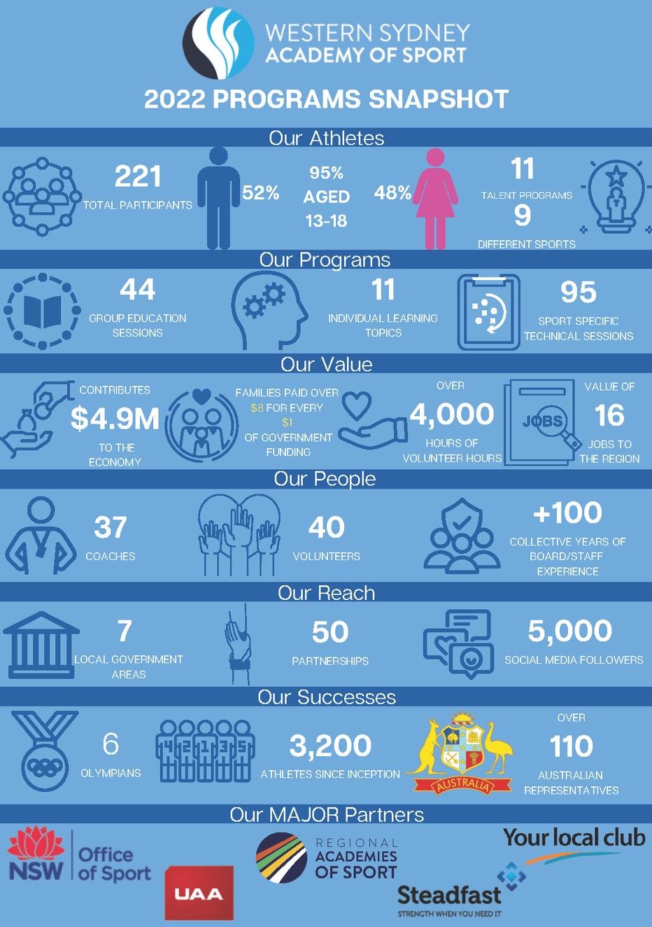 We welcome in 2023, our 19th year as the Western Sydney Academy of Sport and with another cohort of athletes striving for State or National representation or even Olympic Gold, the WSAS is there to support these young talented athletes in achieving their dreams