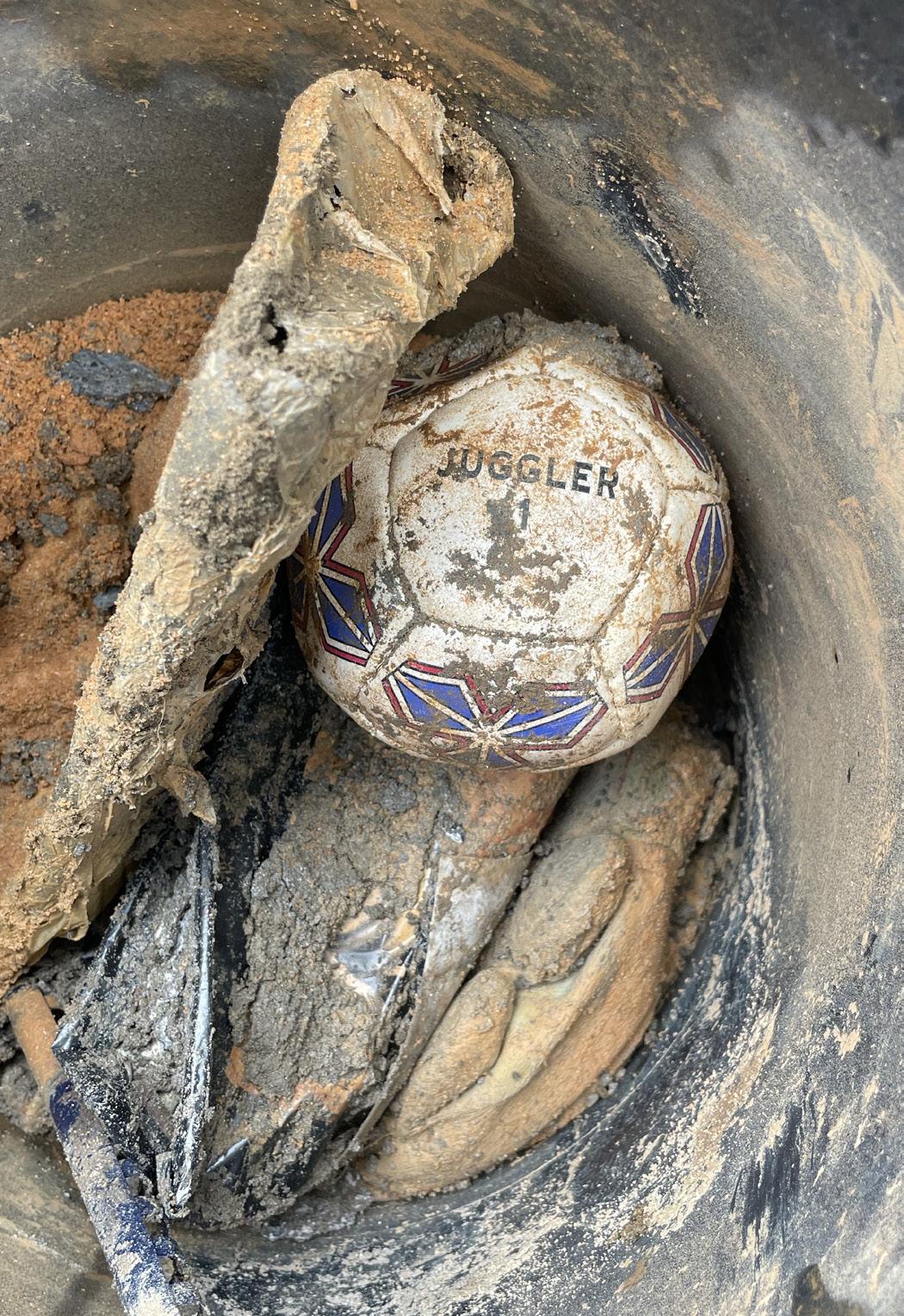 It was a good call. Time and the earth had done their work on the bucket, and the items inside were wet and caked with mud. The newspaper was salvageable, once it dried, but the school directory and class picture were destroyed by the damage from the water. The items such as the Beanie Baby and soccer ball were unharmed, just dirty. But it was the other two items in the bucket, the ones that Brower had no idea were in there, that provided him just the message he was looking to share for this year’s Opening Convocation.