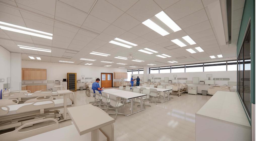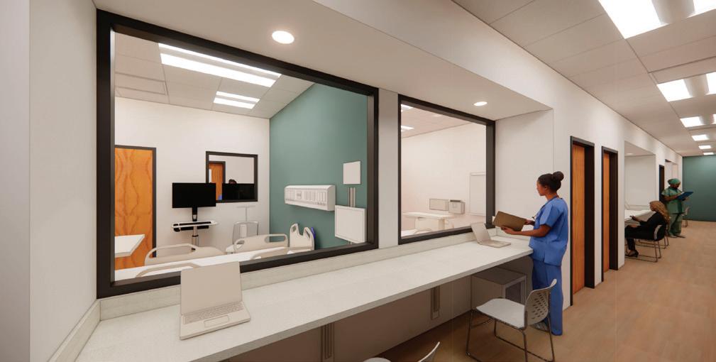 This 40,479-SF, multi-phased project will transform the first, second, third, and fourth floors of The Woodlands Center to support the School of Nursing. The scope includes the renovation of six classrooms on the second floor and two on the third floor. A new skills lab will also be added. Renovations to the fourth floor will create a new patient suite consisting of four standardized patient rooms with staging and control areas. A new simulation suite will occupy part of third floor and will have a medical prep room, control room, four debrief rooms, and four simulation rooms. Additional renovations include office suites.