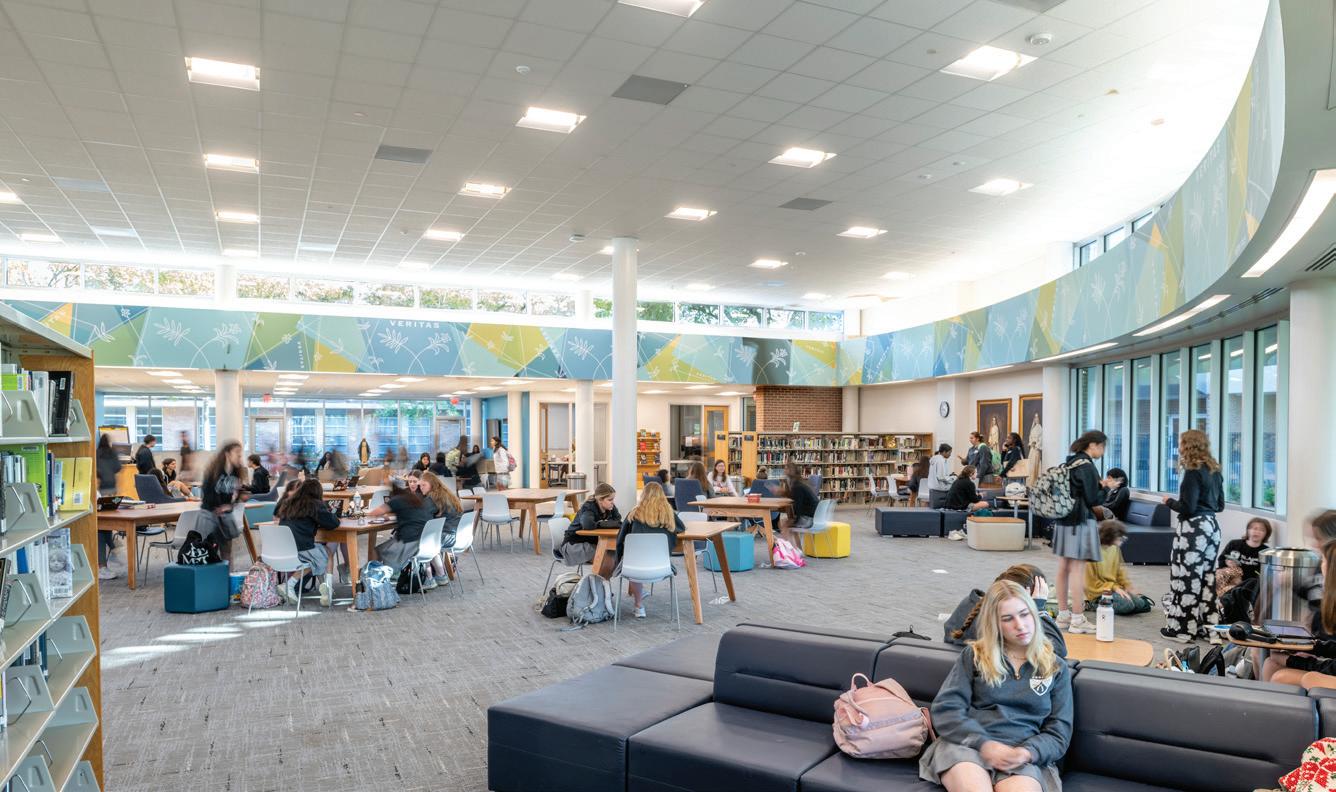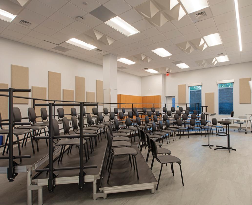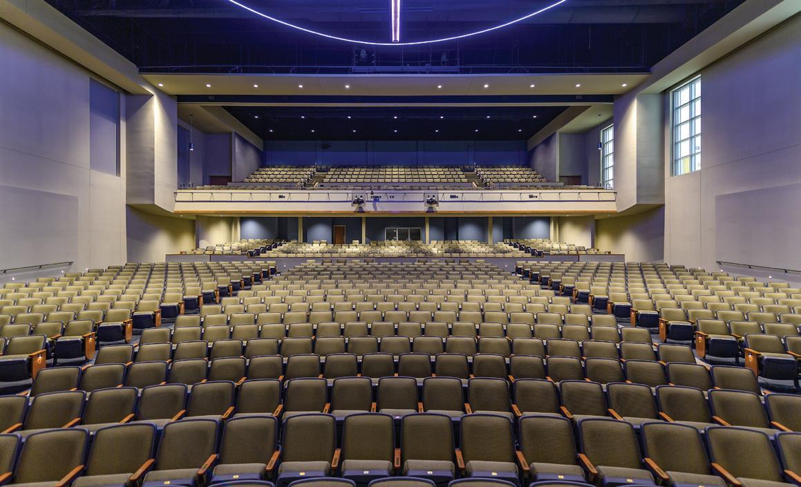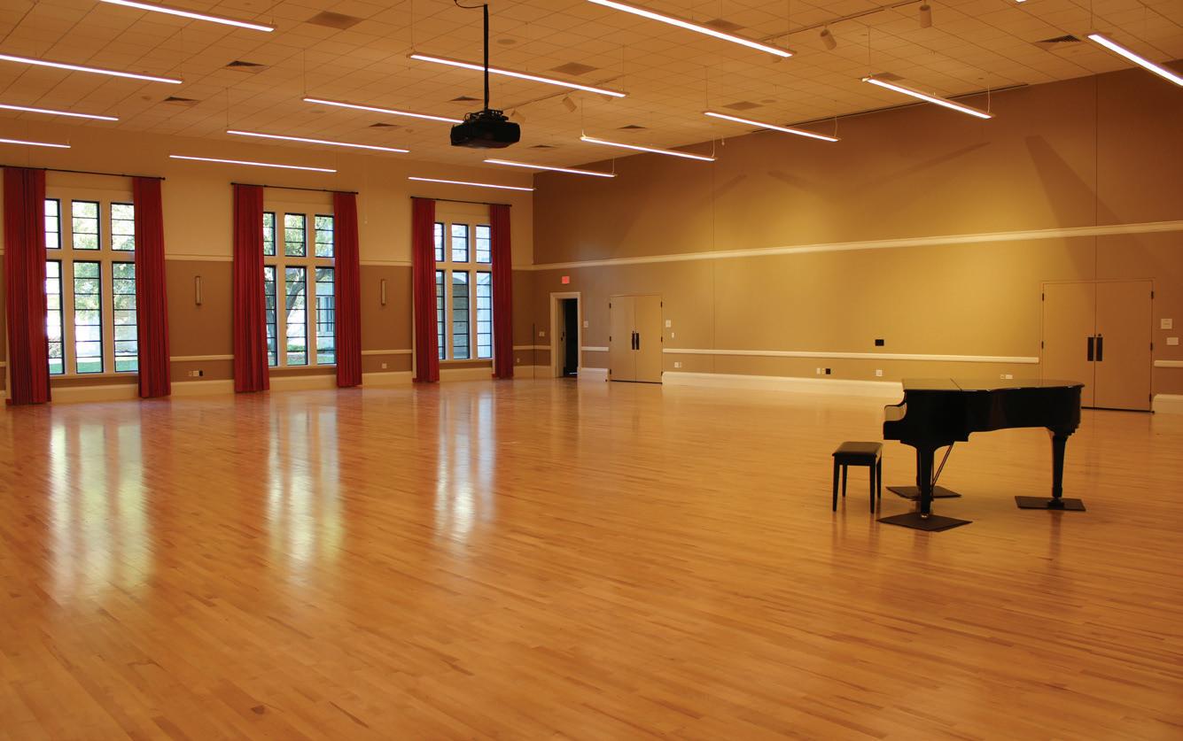 The 35,000-SF Student Life Center is comprised of the Auditorium and Performance Hall (Meyer Hall), Student Commons, Jamieson/ Chilton Dance Studio, and additional classrooms and parking. The 12,000-SF multi-purpose auditorium seats 1,300 and on the second floor a 3,500-SF balcony doubles as a lecture hall for up to 300 people. The school’s former 7,000-SF auditorium was tranSFormed into a student commons, and the stage is now the Arthur W. Buckley Theatre, a black box with 120 seats, which serves as the theater classroom. The commons area now stands at 8,500 square feet and allows for more group work and socializing, and the Spirit Store was upgraded from a small room to a beautiful space conveniently located off the main driveway. The 4,500-SF dance studio provides multi-purpose space for the school, a home for our yoga and wellness programs, and accommodates up to 87 dancers from their original capacity of only 10. The Student Life Center also includes a speech and debate space with a communications classroom, a health classroom, three multi-purpose practice rooms, three vocal studios, and boys’ and girls’ dressing rooms. The project was completed in October 2018 at a construction cost of $22,400,000.