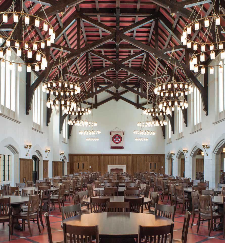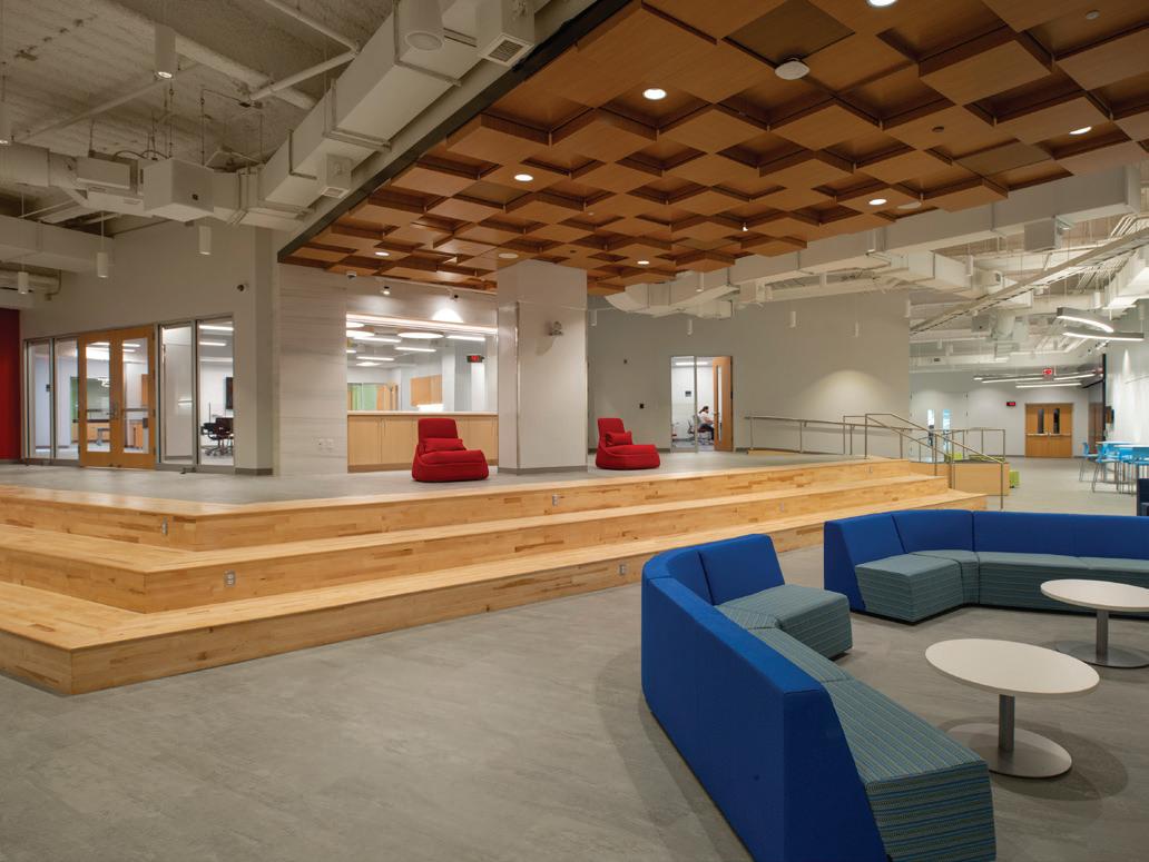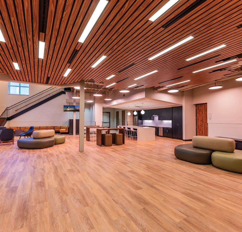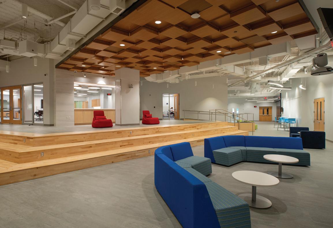 The 35,000-SF Student Life Center is comprised of the Auditorium and Performance Hall (Meyer Hall), Student Commons, Jamieson/ Chilton Dance Studio, and additional classrooms and parking. The 12,000-SF multi-purpose auditorium seats 1,300 and on the second floor a 3,500-SF balcony doubles as a lecture hall for up to 300 people. The school’s former 7,000-SF auditorium was tranSFormed into a student commons, and the stage is now the Arthur W. Buckley Theatre, a black box with 120 seats, which serves as the theater classroom. The commons area now stands at 8,500 square feet and allows for more group work and socializing, and the Spirit Store was upgraded from a small room to a beautiful space conveniently located off the main driveway. The 4,500-SF dance studio provides multi-purpose space for the school, a home for our yoga and wellness programs, and accommodates up to 87 dancers from their original capacity of only 10. The Student Life Center also includes a speech and debate space with a communications classroom, a health classroom, three multi-purpose practice rooms, three vocal studios, and boys’ and girls’ dressing rooms. The project was completed in October 2018 at a construction cost of $22,400,000.