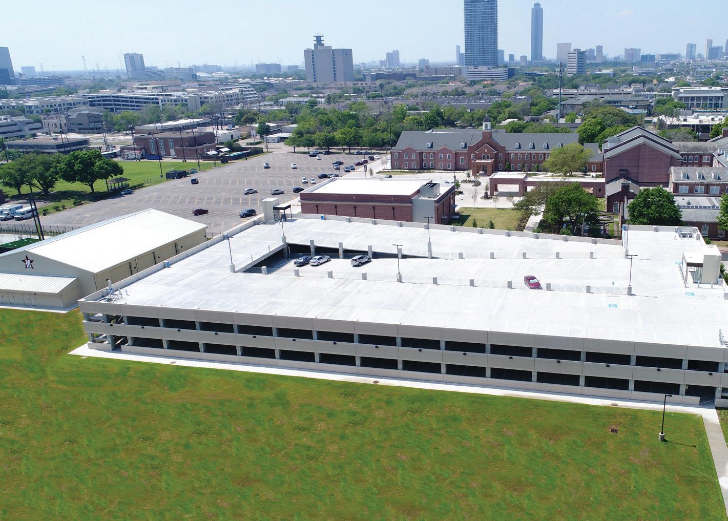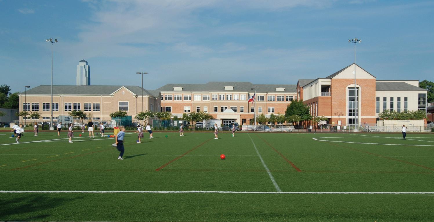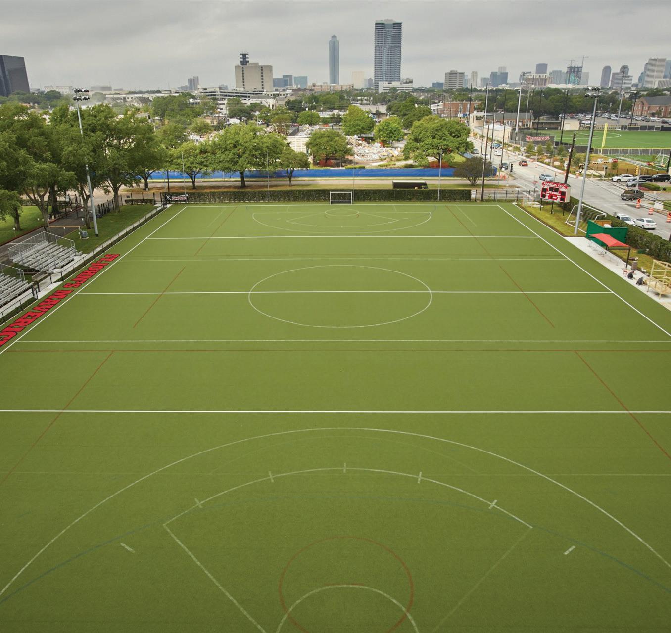 The St. John’s School $8.8 million athletic expansion called for the creation of a multi-purpose practice facility for softball and 1.86-acre/81,021-SF field hockey, an indoor batting cage, and a 290,834-SF all-sport practice space that is utilized during inclement weather. The multipurpose fields are turf to maximize usage and minimize weather impact. Bellows also added a new 23,000-SF press box and dugout, new sound system, two synthetic turf bullpens, and batting cages. The Ligums Practice Facility is a 10,430-SF indoor batting cage and all-sport facility complete with five batting cage bays, locker rooms, and storage. Also built on the property is a threelevel, 62,500-SF parking garage that is shared with neighboring St. Luke’s United Methodist Church. The field hockey construction was completed in August 2016, the athletic complex in October 2016, and the shared garage in February 2017.