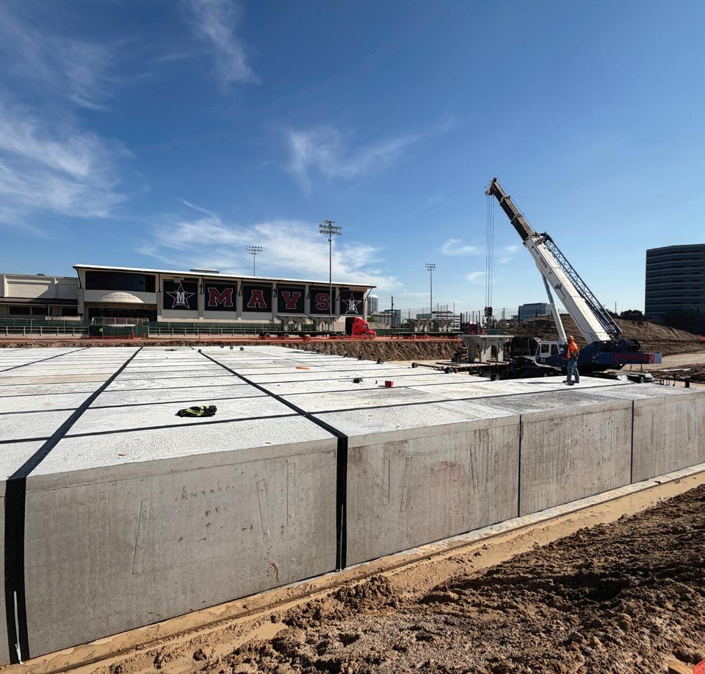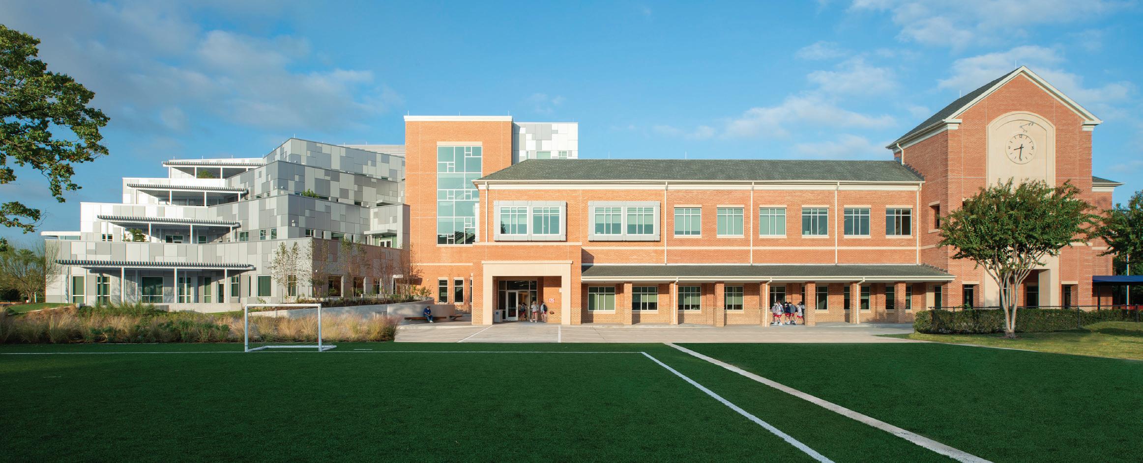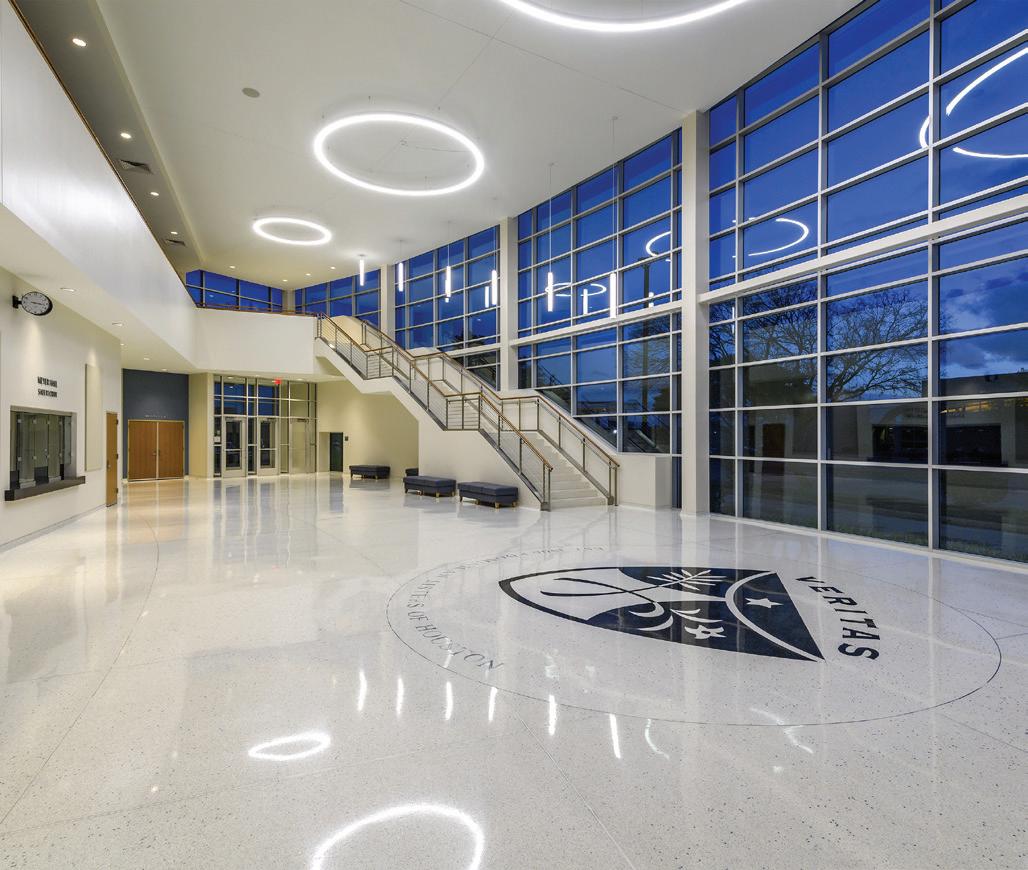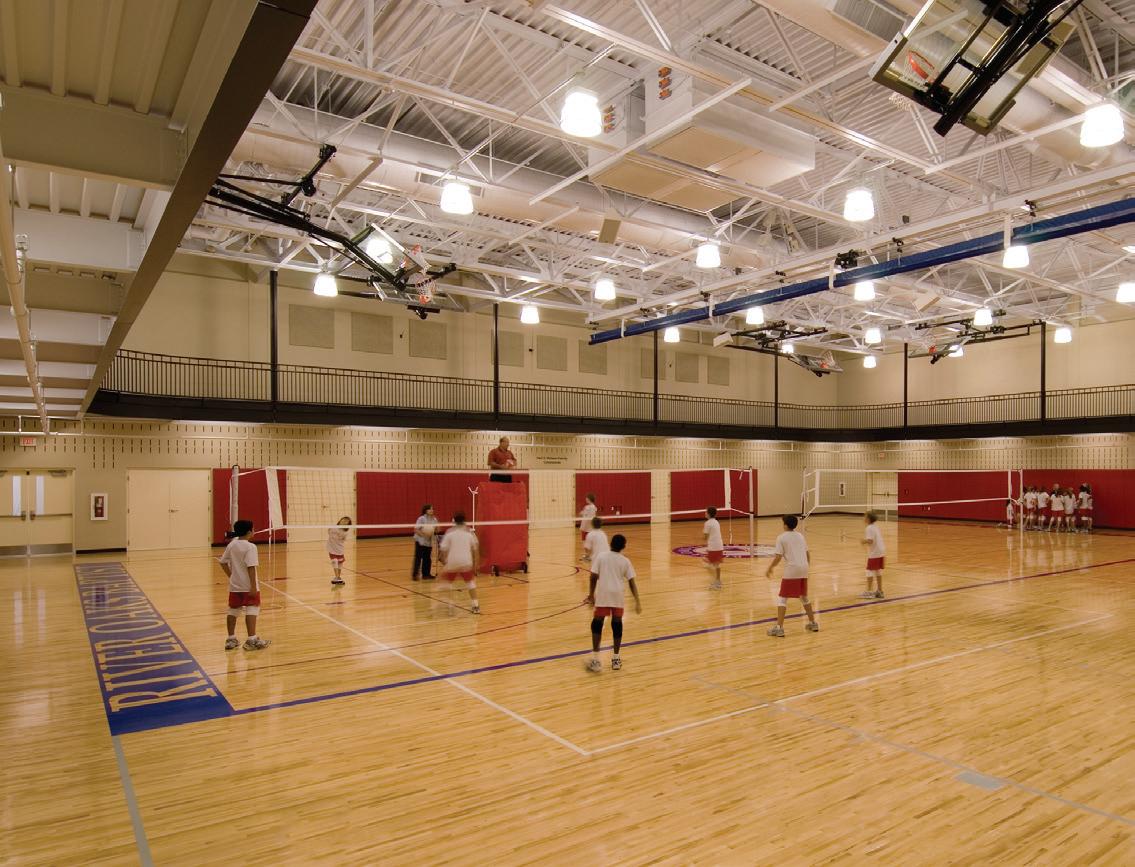 The St. John’s School $8.8 million athletic expansion called for the creation of a multi-purpose practice facility for softball and 1.86-acre/81,021-SF field hockey, an indoor batting cage, and a 290,834-SF all-sport practice space that is utilized during inclement weather. The multipurpose fields are turf to maximize usage and minimize weather impact. Bellows also added a new 23,000-SF press box and dugout, new sound system, two synthetic turf bullpens, and batting cages. The Ligums Practice Facility is a 10,430-SF indoor batting cage and all-sport facility complete with five batting cage bays, locker rooms, and storage. Also built on the property is a threelevel, 62,500-SF parking garage that is shared with neighboring St. Luke’s United Methodist Church. The field hockey construction was completed in August 2016, the athletic complex in October 2016, and the shared garage in February 2017.