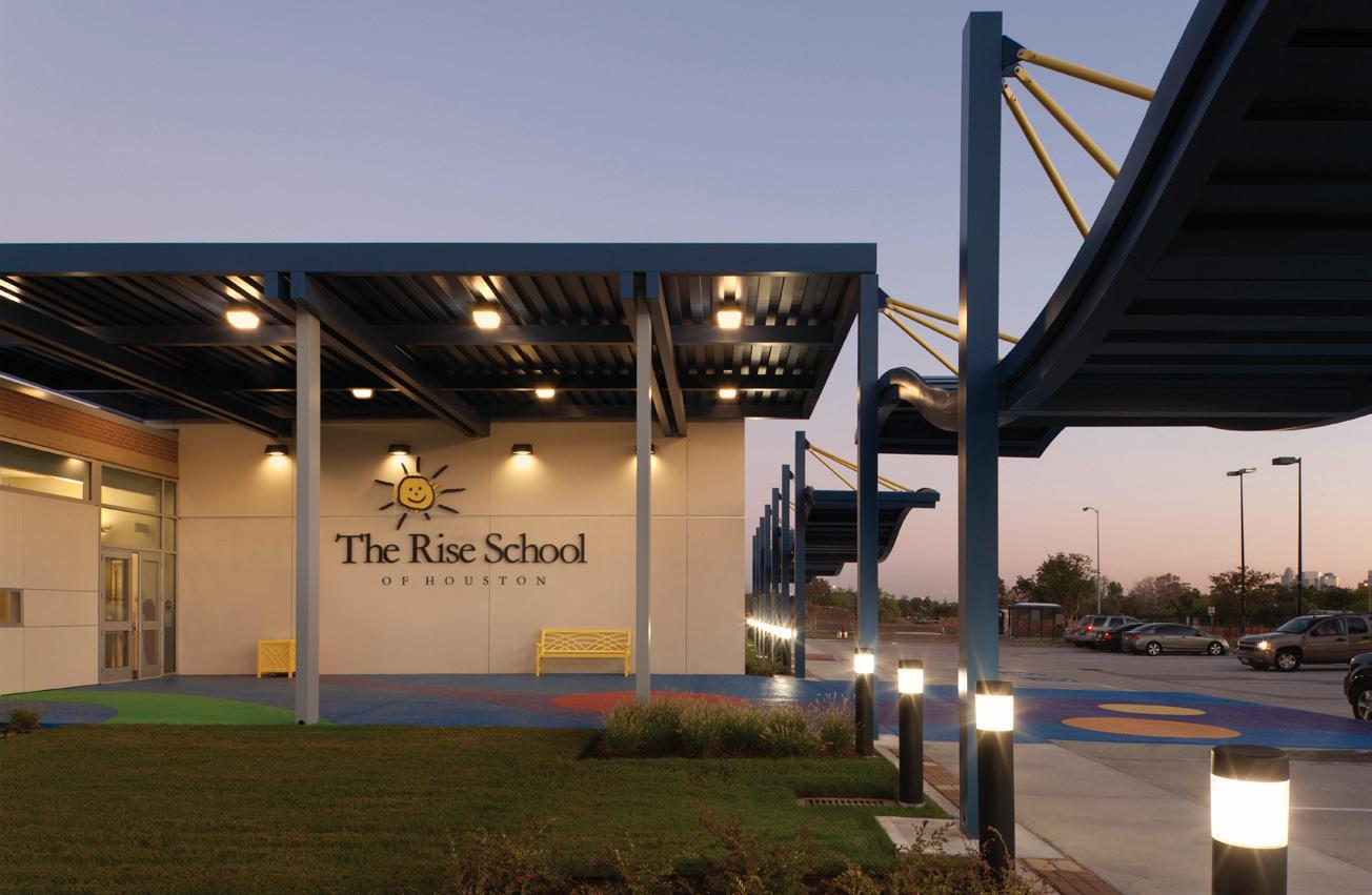 The Rise School is a non-profit organization that provides early childhood education to children with Down Syndrome. This 26,000-SF project features a cheerful and bright blue brick building surrounded by playgrounds. The project includes 12 classrooms, outdoor and indoor play spaces, and therapy spaces. The Rise School is located at the Texas Medical Center Leland Campus. It was completed in 2011 with a $6.5 million construction cost.