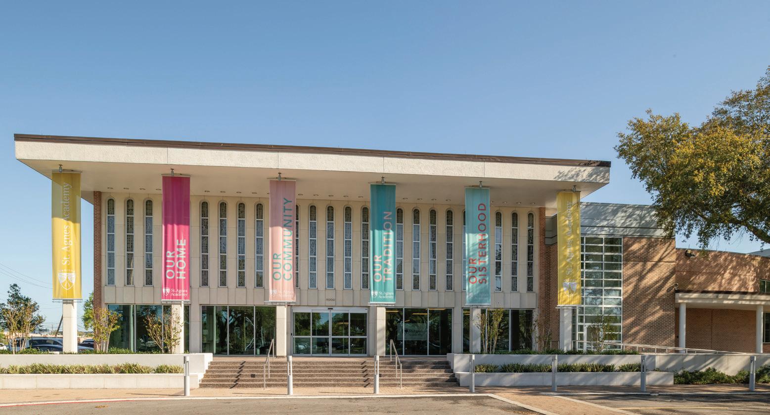 St. Agnes Academy is intentional about providing their students and staff with an exceptional academic program in a transformational setting. The most recent space to receive attention was the Administrative Wing located in the main campus building constructed in 1963. The Wing serves as a location for offices, library, classrooms, restrooms, small staff kitchen, and conference rooms. This 94,000-SF project consisted of renovating the existing student, staff and public restrooms to become handicap/ADA, accessible; the addition of an exterior handicap accessible ramp that called for replacement of concrete steps and porch with new entry; installation of new cabinets, fixtures and insulated glass windows; replacement of air handling units; installation of new sprinkler and fire alarm systems; and upgraded interior finishes to the floors, walls, ceilings, and lighting. The existing terrazzo floors and brick walls remained and were protected throughout construction. Additionally, all aspects of the Wing were brought up to current handicap code compliance. This project was completed in February 2024 at a construction cost of $10.475MM.