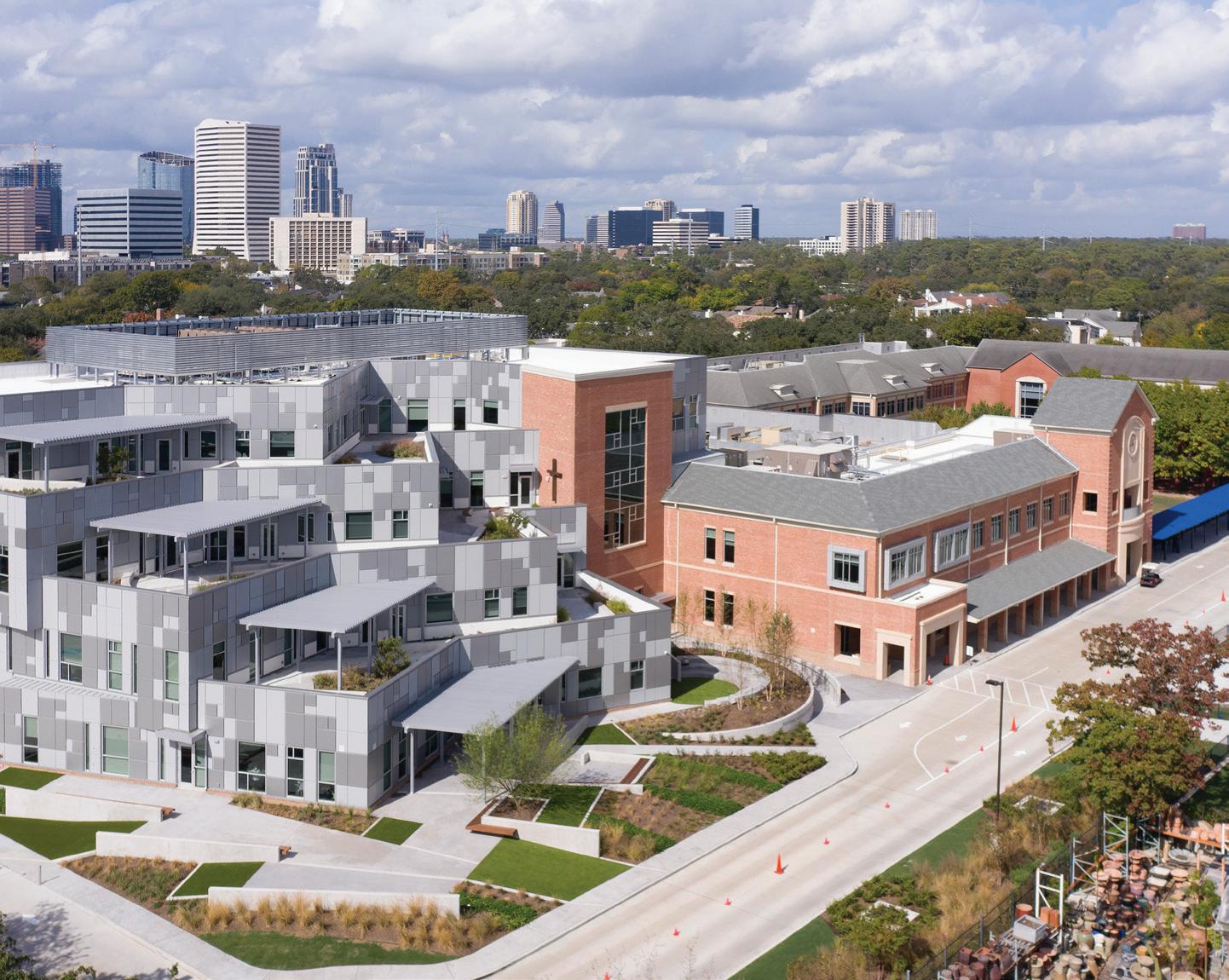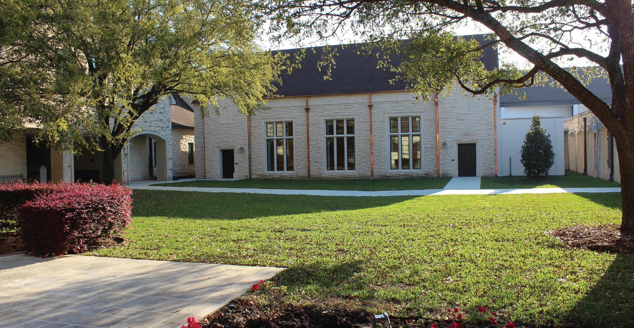 Replacing the 40+ year-old Winston Hall, the 70,000-SF Flores Hall and Campus Center Building project serves as the hub of academic and social activity for the school. The 70,000-SF undertaking includes the Flores Hall dining and meeting space, the Chao Assembly Room, Frankel Balcony, the Fondren outdoor dining areas, a café, counseling and admissions offices, additional fine arts instructional space, Heritage Hall and spirit store, 45 underground parking spaces, and a new Great Lawn that provides an additional 22,000 square feet of green space for students to interact. The project doubled the fine arts curriculum space to 5,000 square feet. The Flores Hall and Campus Center Building is LEED certified (services provided by Kirksey Architecture) and was completed in August 2015 with a $32.2M construction cost.