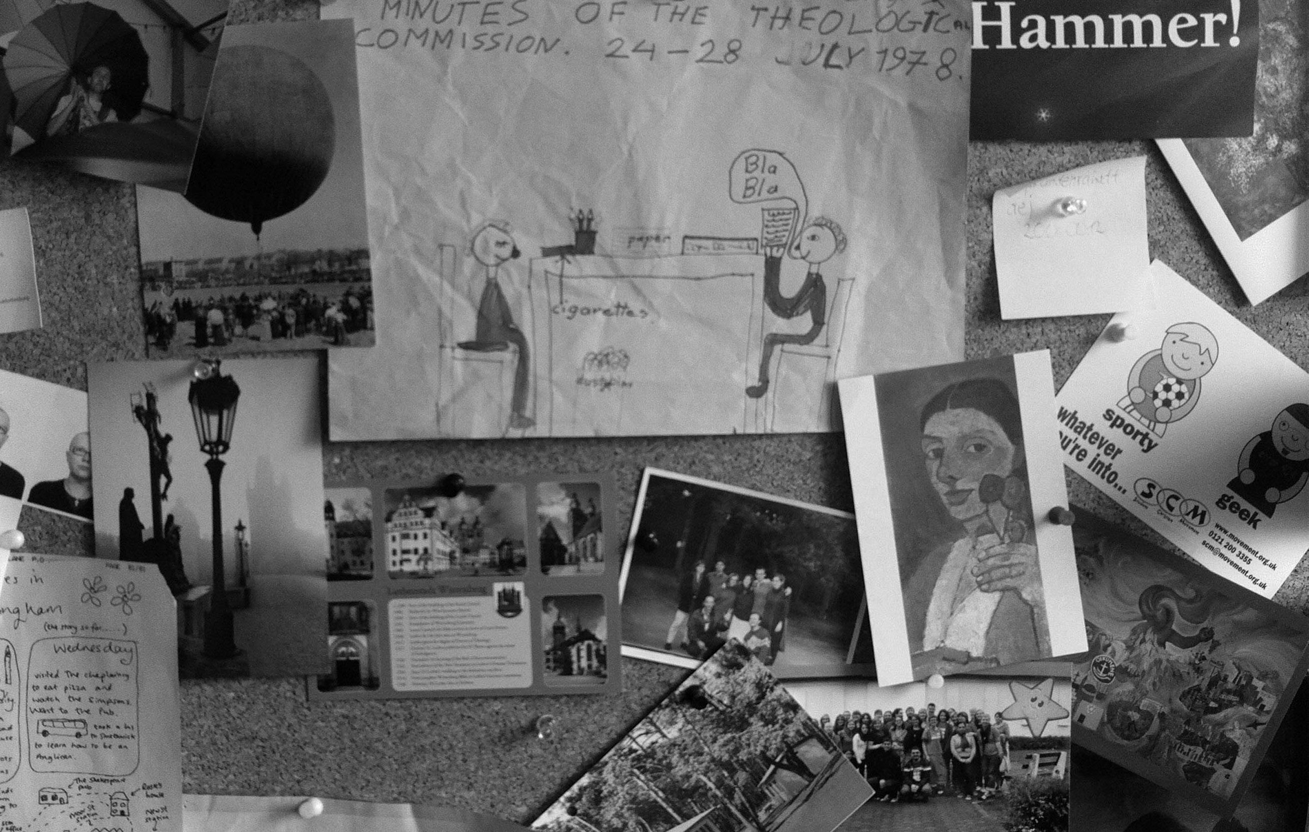 American, Middle Eastern and Asia and Pacific Regions. The office is full of little memories of the WSCF past: there is copy of the official letter sent to Société de Banque Suisse telling them that WSCF Europe does not wish to be clients there anymore as they, at the time (in 1982), supported the Apartheid Regime in South Africa. There is a Finnish cartoon from a former Regional Secretary giving good advice on how to write convincing fundraising applications. And there are loads of Christmas Cards from WSCF Friends and much, much more.