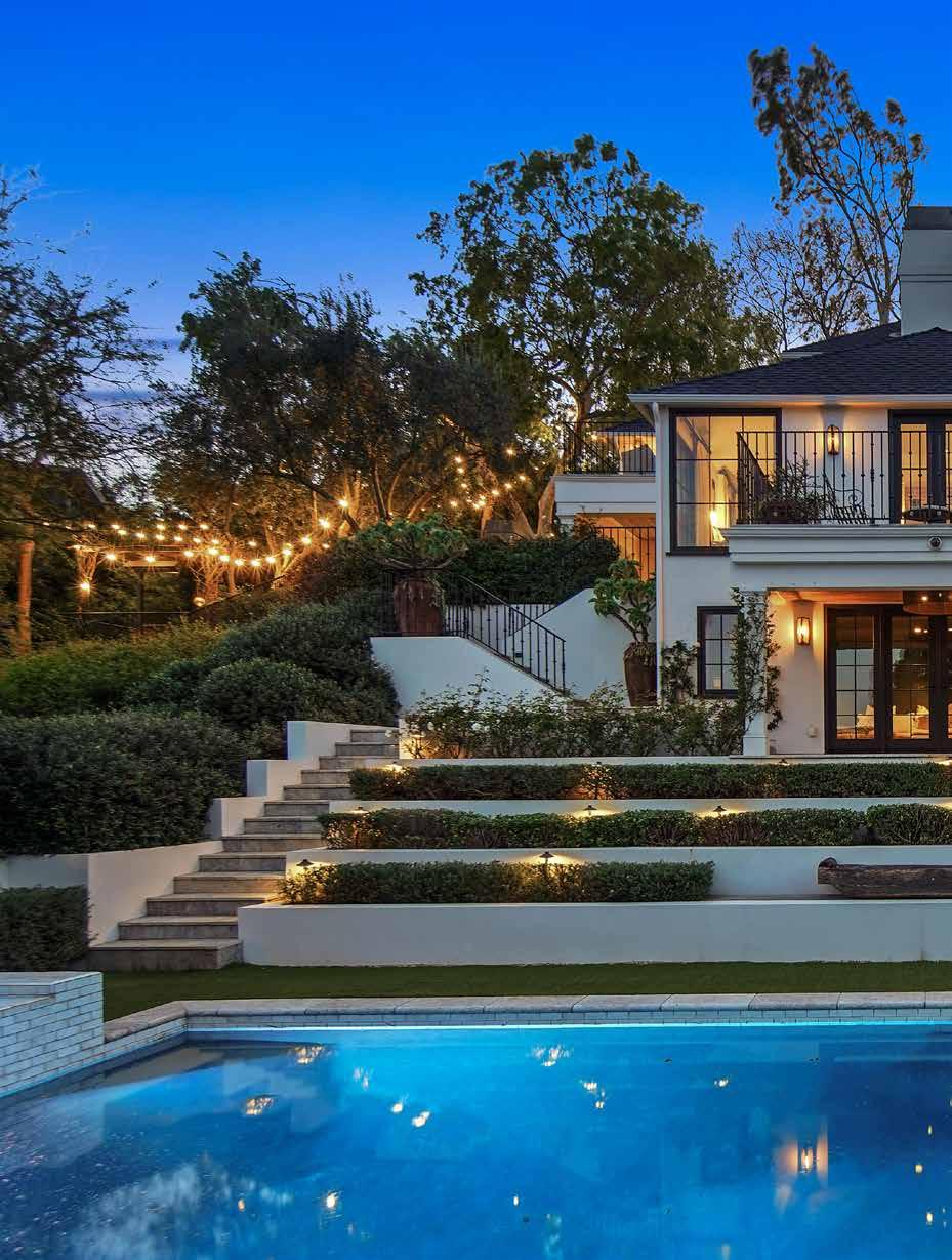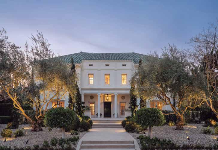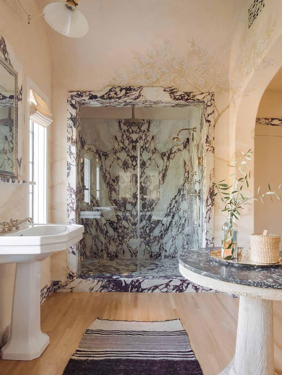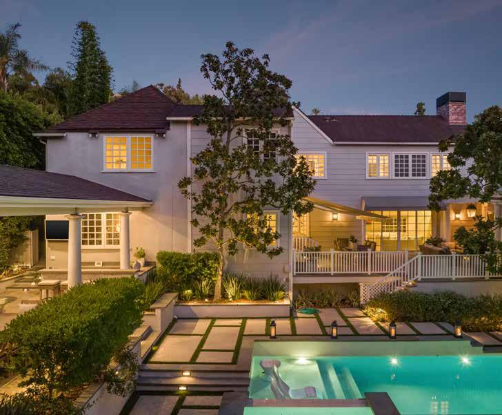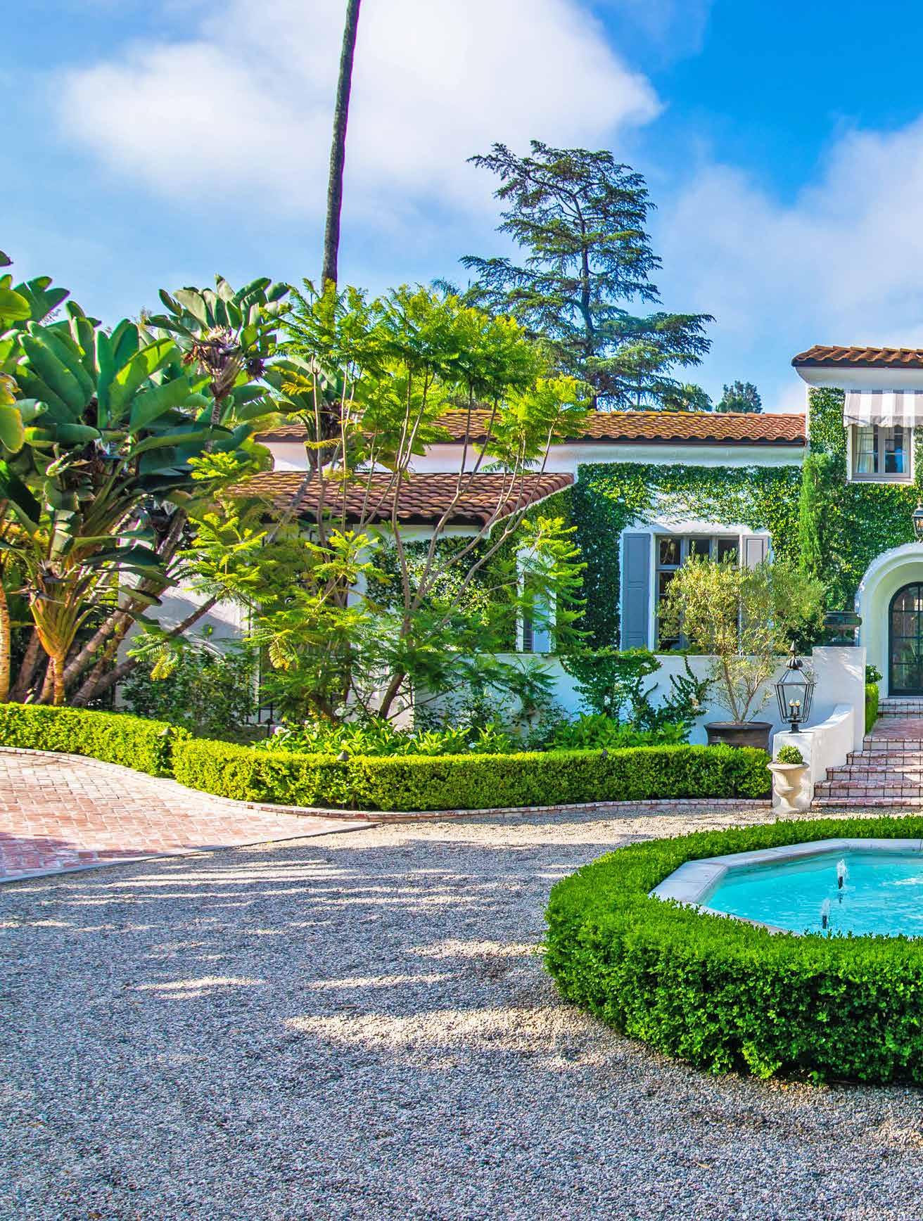 Good closets make for a good marriage.” In addition to the many amenities that the home itself offers, the grounds feature a pottery room, a side motor court, and a rear garden perfect for entertaining or just a fun family weekend at home, with a koi/turtle pond, an outdoor fireplace, a wet bar with BBQ grill, and organic gardens. Also of note (and left untouched by the designer pair) is a 200-yearold oak tree that, according to Berkus and Brent, helped sell them on the home when they purchased it in 2016. “We pictured Poppy, and eventually the rest of our family, playing under that tree, and we thought this was a place we could put down roots,” Brent said.