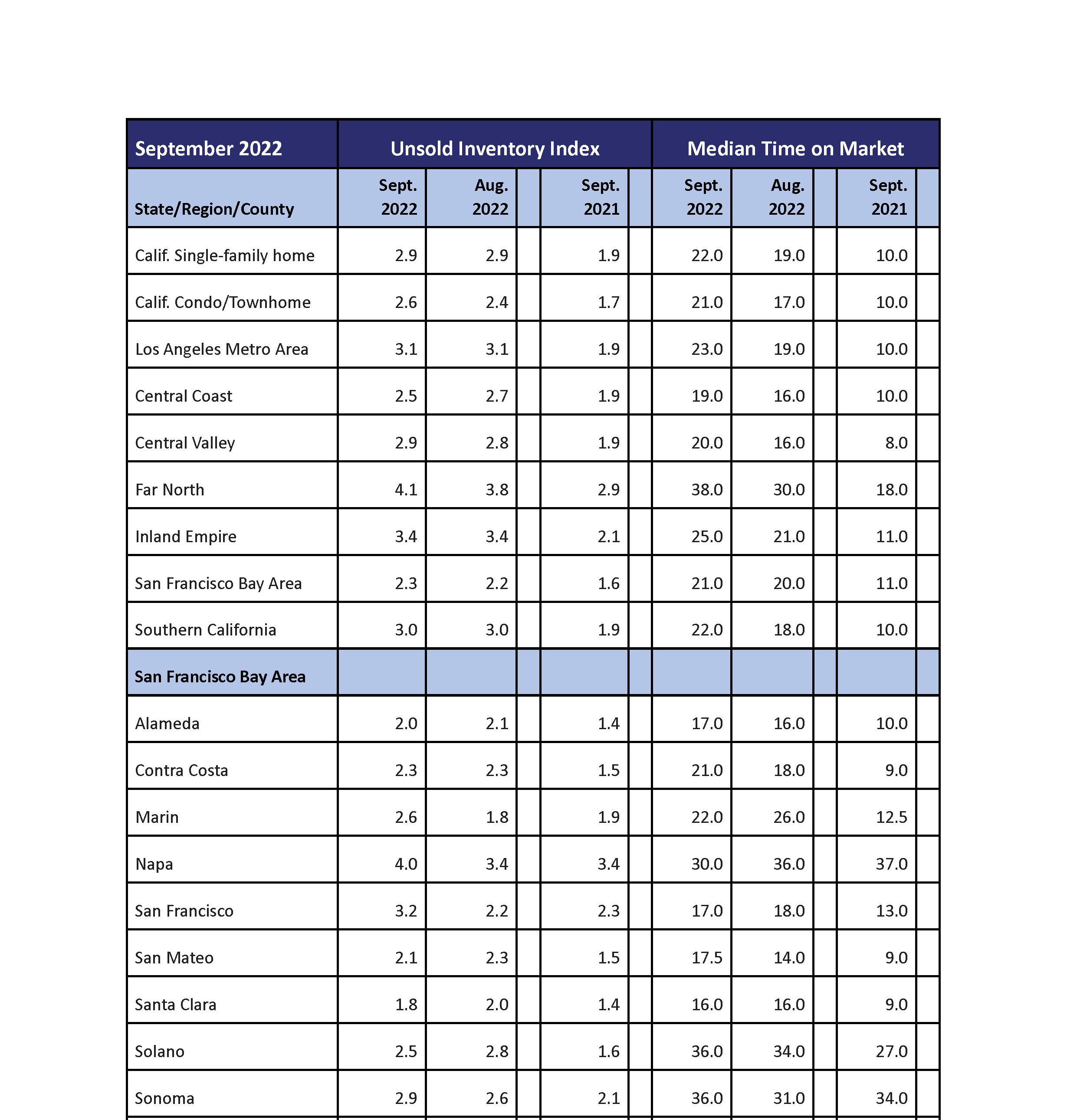 • The median number of days it took to sell a California single-family home was 22 days in September and 10 days in September 2021.
