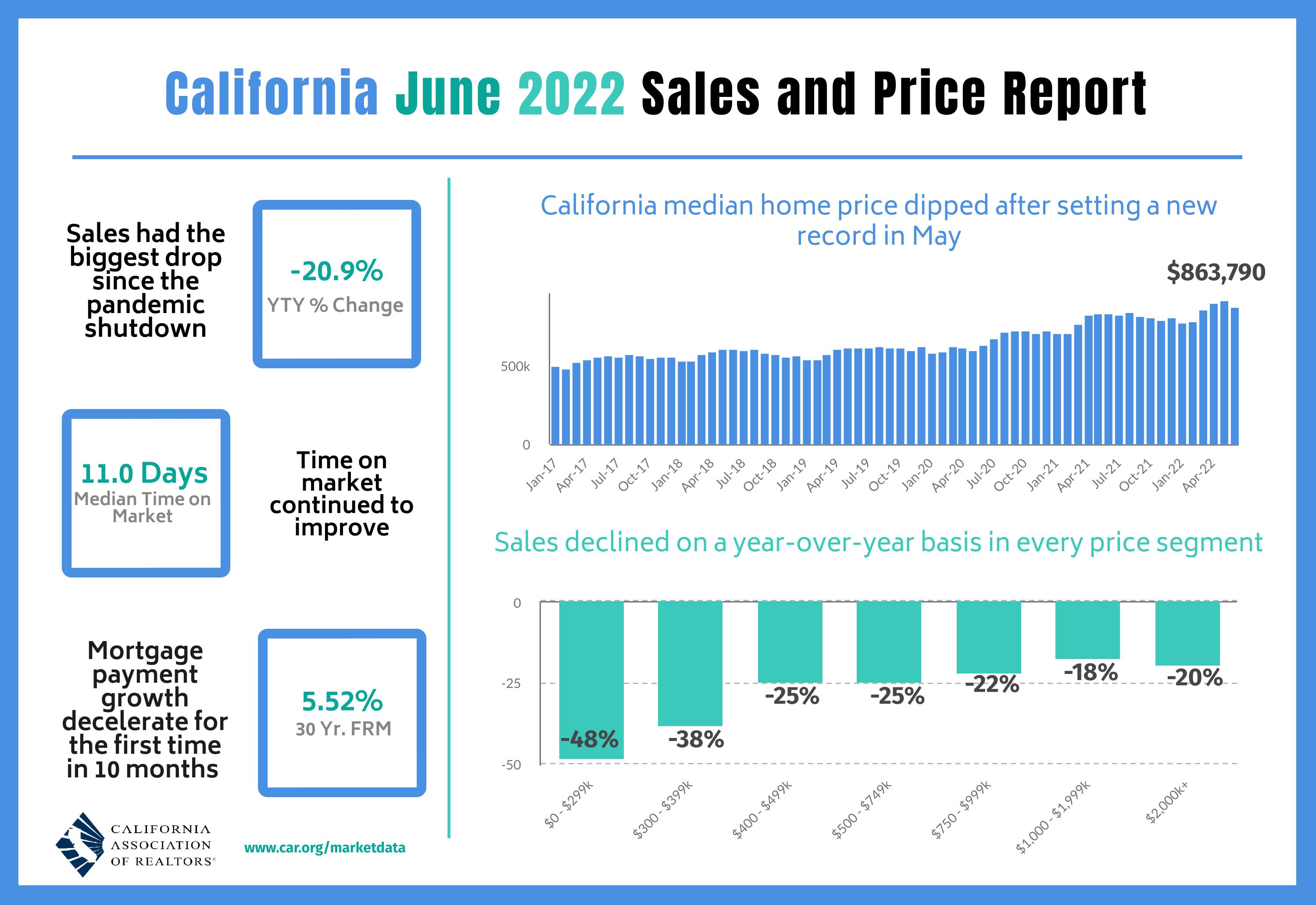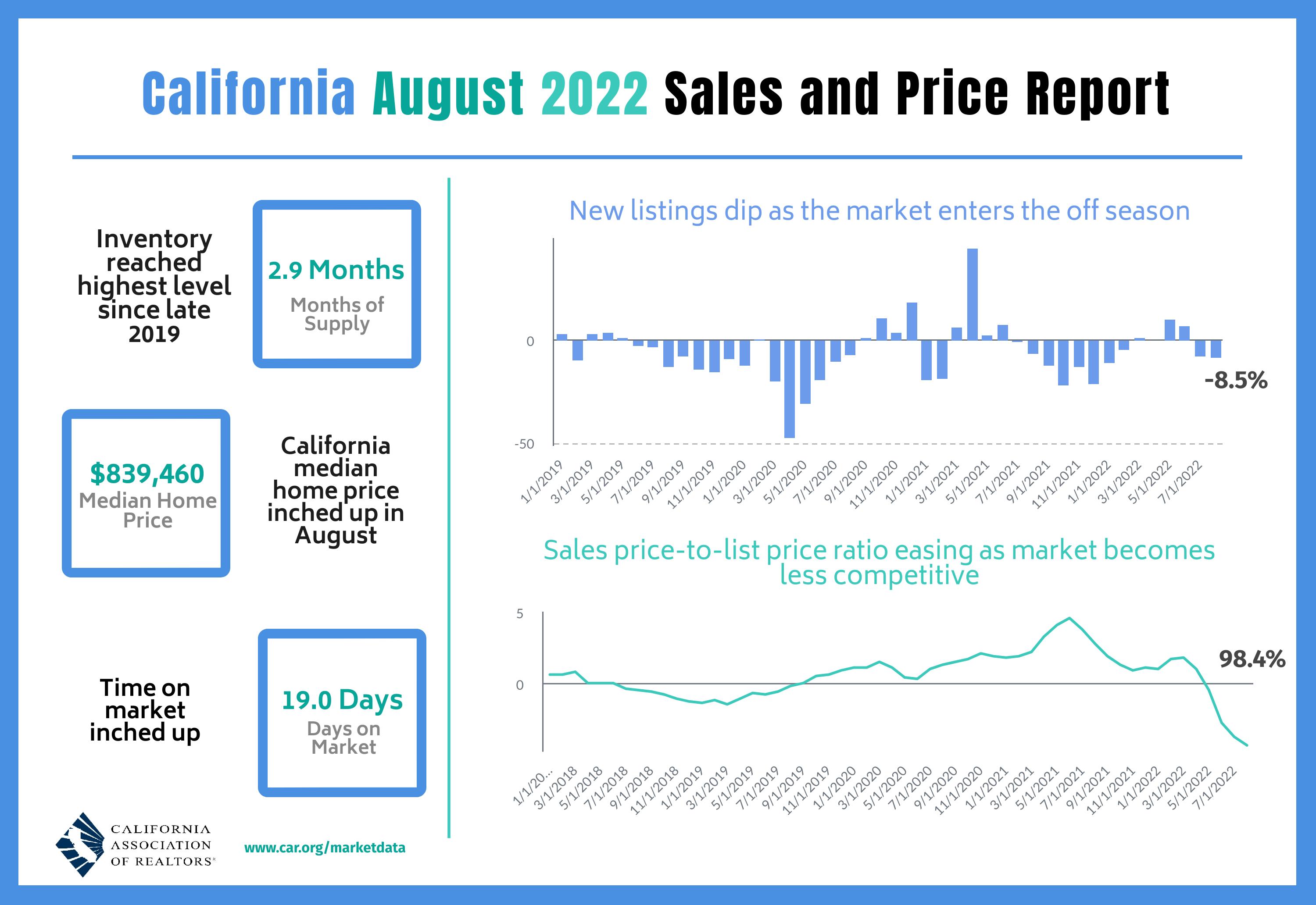 Following a brief sales bounce back in August, rapidly rising mortgage rates slowed California home sales in September and resumed the month-to-month declining trend that began in the spring, the CALIFORNIA ASSOCIATION OF REALTORS® (C.A.R.) said today.  Infographic:  https://www.car.org/Global/Infographics/2022-09-Sales-and-Price
