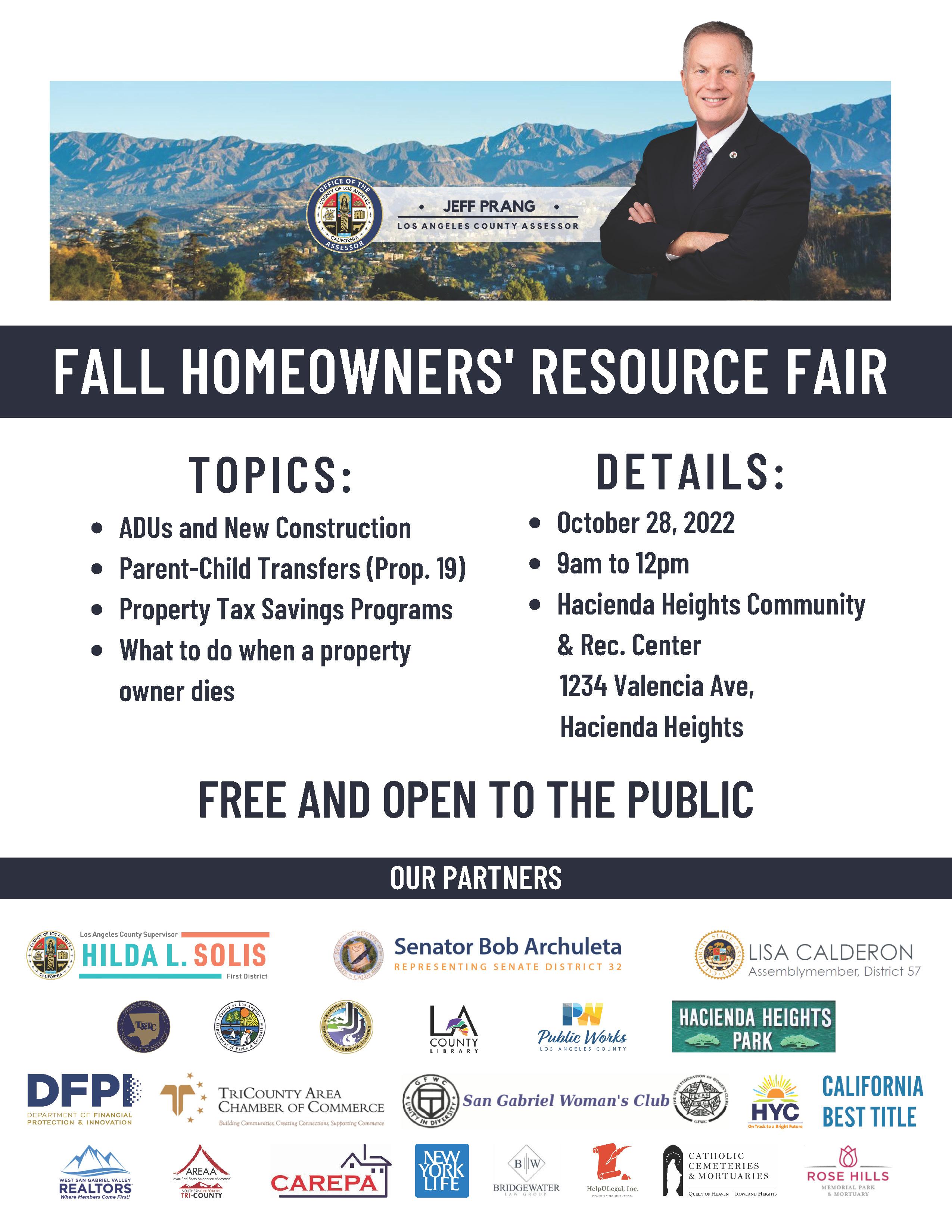 For more information or to register for the Homeowners’ Resource Fair go to: https://assessor.lacounty.gov/news-information/events