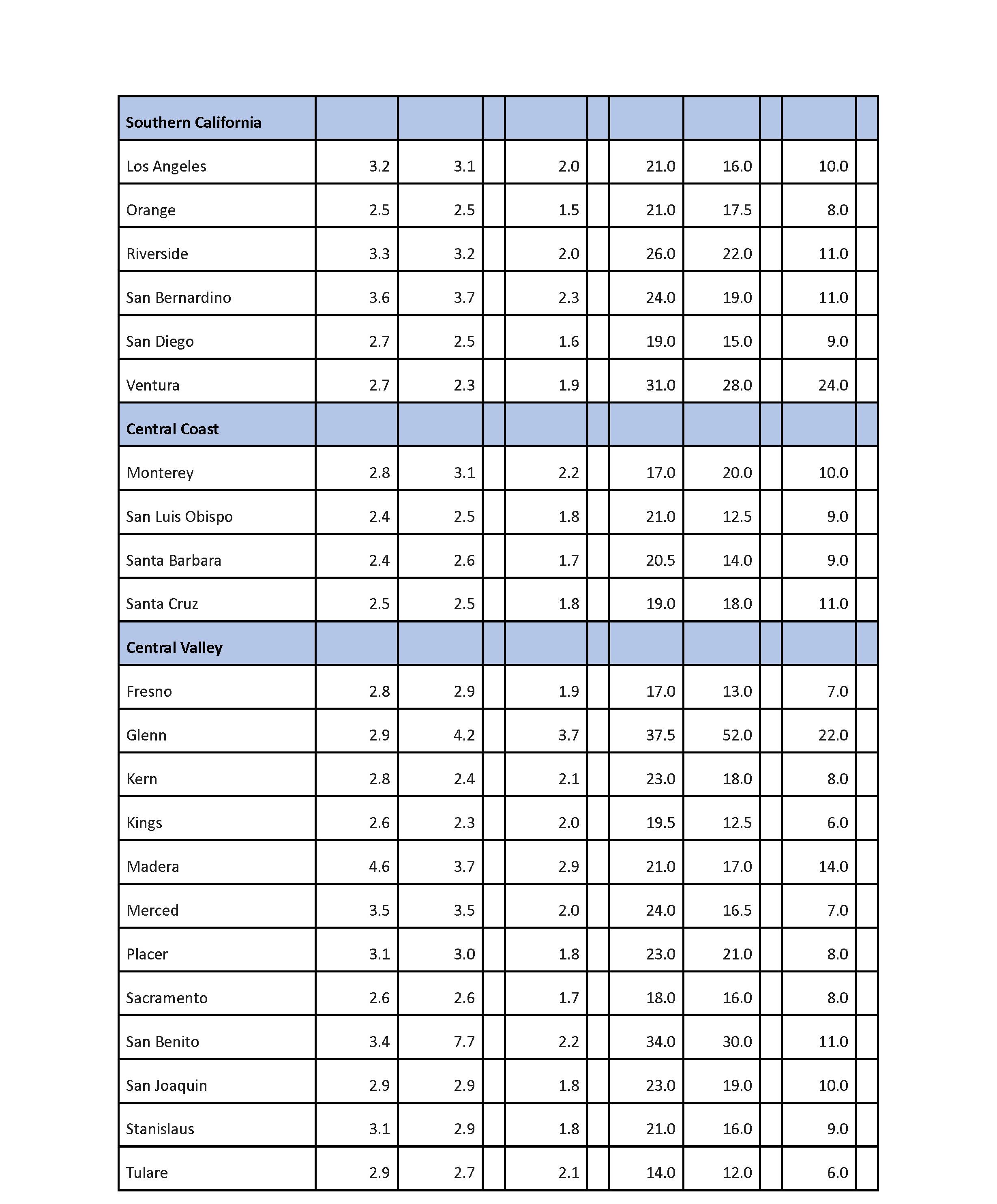 Note:  The County MLS median price and sales data in the tables are generated from a survey of more than 90 associations of REALTORS® throughout the state and represent statistics of existing single-family detached homes only. County sales data is not adjusted to account for seasonal factors that can influence home sales. Movements in sales prices should not be interpreted as changes in the cost of a standard home. The median price is where half sold for more and half sold for less; medians are more typical than average prices, which are skewed by a relatively small share of transactions at either the lower end or the upper end. Median prices can be influenced by changes in cost, as well as changes in the characteristics and the size of homes sold. The change in median prices should not be construed as actual price changes in specific homes.