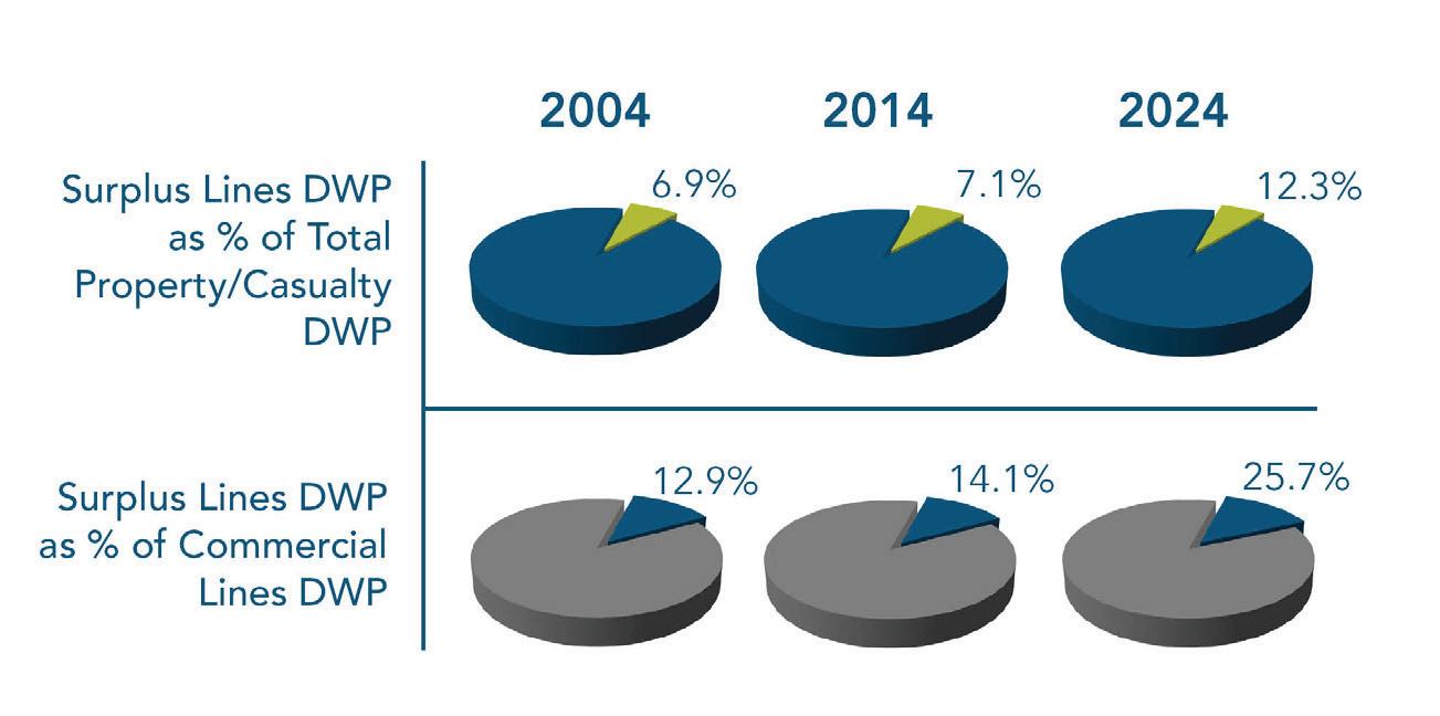 • Stamping office states account for approximately 63% of all U.S. surplus lines premium, providing a valuable indicator of the total U.S. surplus lines market.
