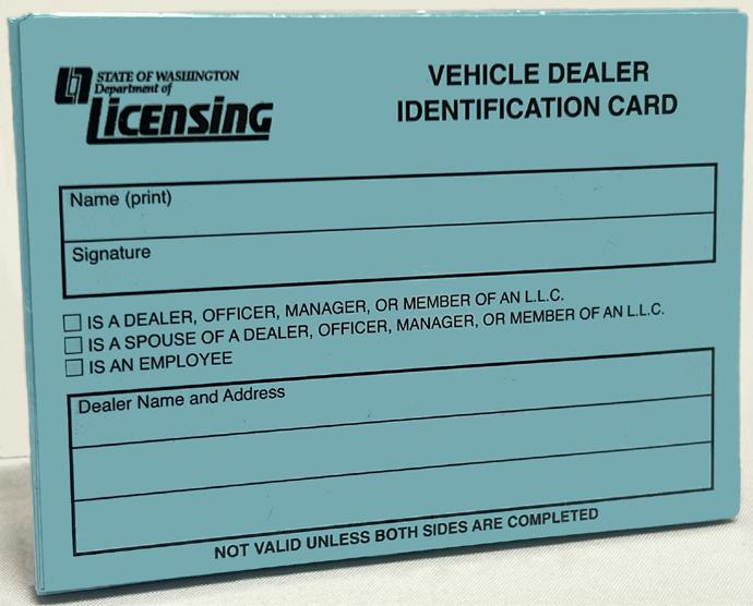 In reference to the Identification cards: Under WAC 308-66-160 section 3, it states that the following are permitted to use the dealer endorsement plate: