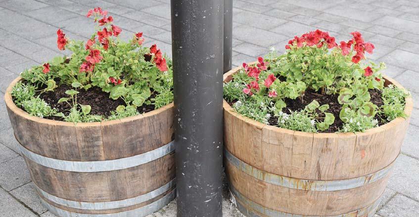 Twenty wine barrels containing a variety of flowers were installed on the footpath along Johnsonville Road.