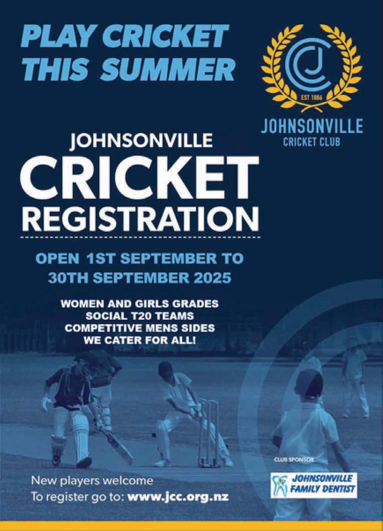 jcc.org.nz or follow the club on social media. “Come and be part of Johnsonville Cricket Club this summer, where cricket and community come together,” JCC says.