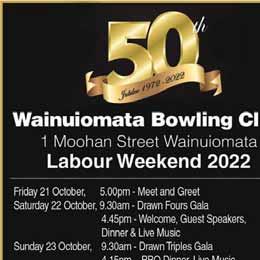 The Wainuiomata Bowling Club will celebrate its 50th Jubilee during Labour weekend, 21 to 23 October.
