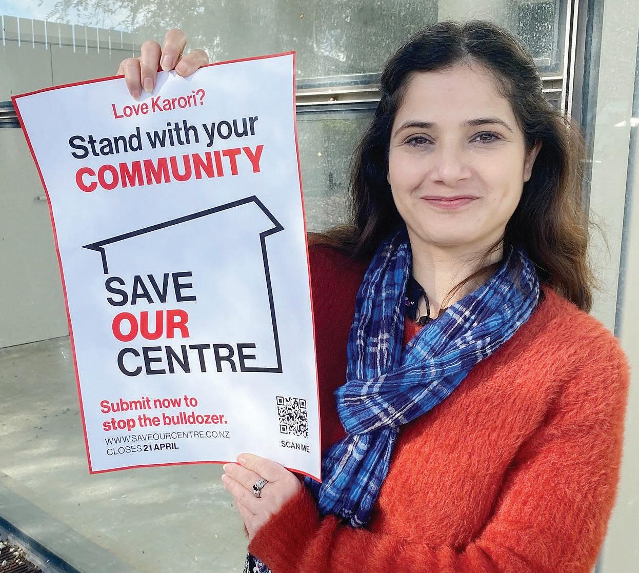 Rubbana Adnan with a “Save our Centre” poster. Photo: Supplied.