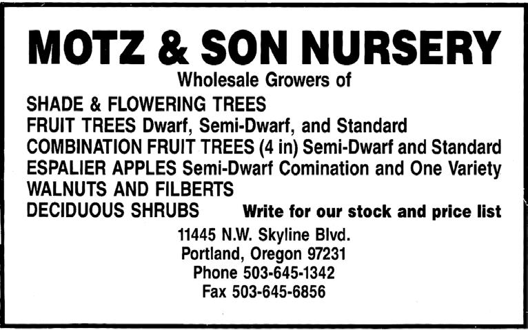 Specimen Street and landscape Trees in large Root Control Bags. Year around availability, easier shipping, handling and establishment. Mount Vernon. (360) 428-5810. Fax (360) 4281822. www.urbanforestnursery.com. WSNLA MEMBER.