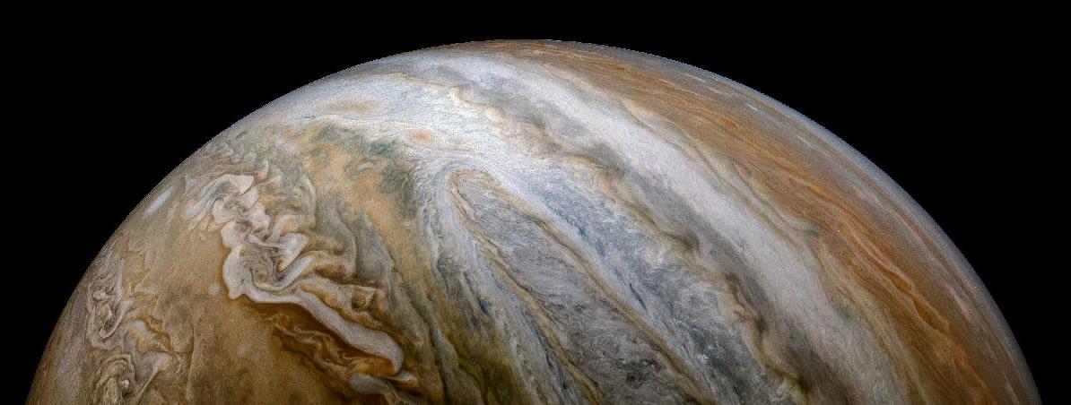 This stunning image of Jupiter’s cloud tops was taken by NASA’s Juno mission and processed by Kevin M. Gill. You too can create amazing images like this, all with publicly available data from Juno. Go to missionjuno.swri.edu/junocam to begin your image procession journey – and get creative!