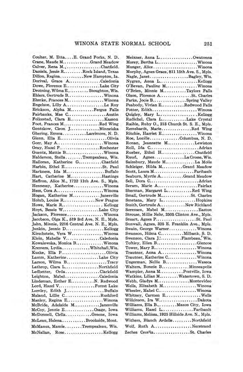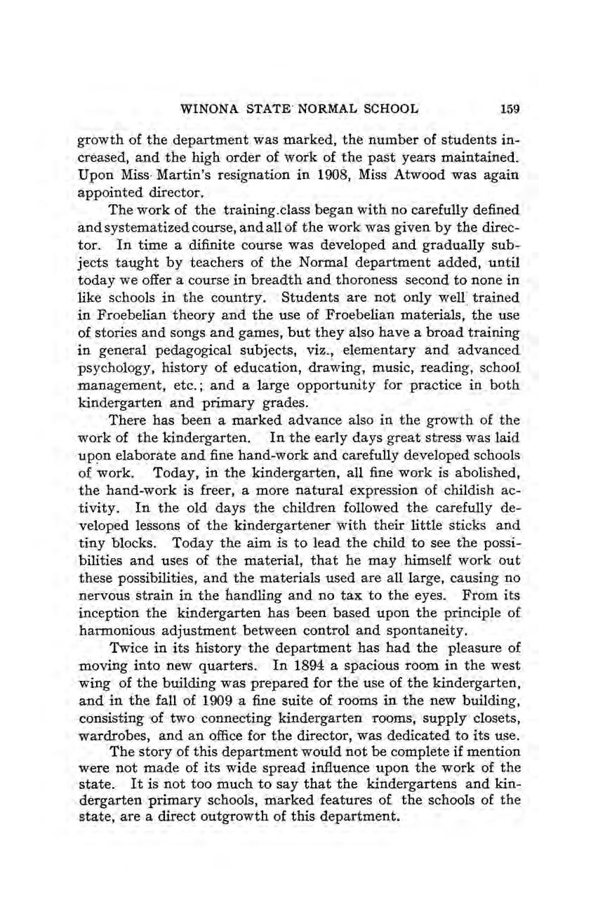 Valuable assistance too has been rendered by Miss Louise Kuehn, Mrs. Grace Doty Hopkins, Mrs. Kate Berry Morey, Judge H. L. Buck, Dr. G. O. Virtue, Supt. C. G. Schulz, and Dr. Irwin Shepard. Other members of the faculty and citizens of Winona not here mentioned have given much assistance in one way or another.