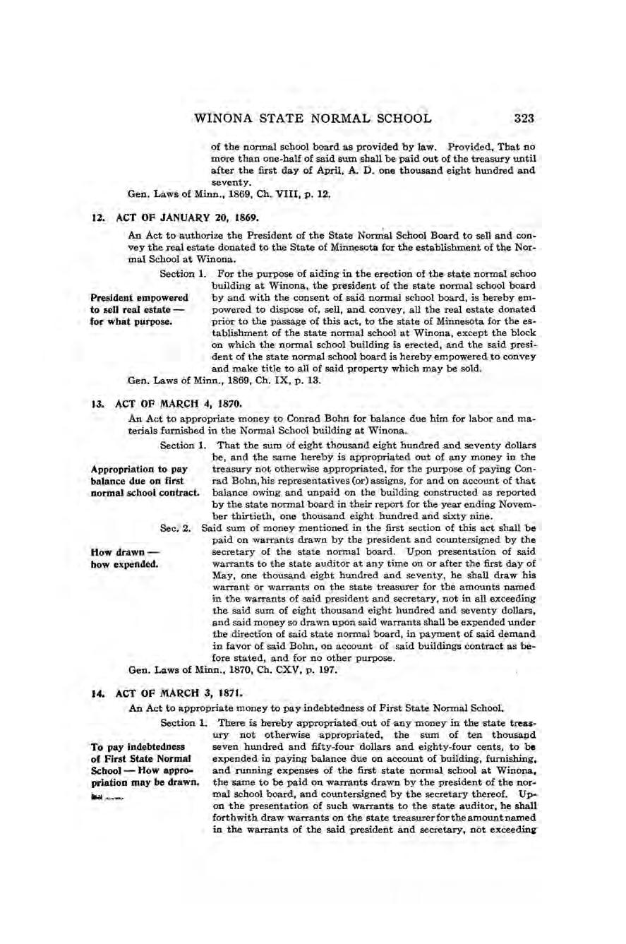 Feb. 6, 1866 Legislature made first appropriation of $10,000 for building at Winona.