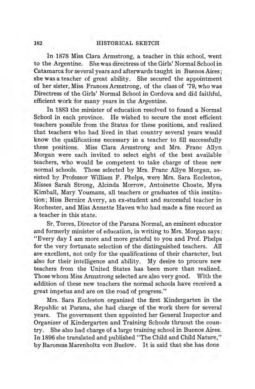 Stone, Mr., member of Board of examiners, 37 Storie, Agne G., on faculty, 258 Story, Jacob, donation to Normal School, 24 Stowe, Professor, visits Europe, 12 Strong, Sarah H., grade in first class, 75; teaches in South America, 182; work in Argentine, 183; death, 183 Strong, Rev. Mr., at first Teachers’ Institute, 3