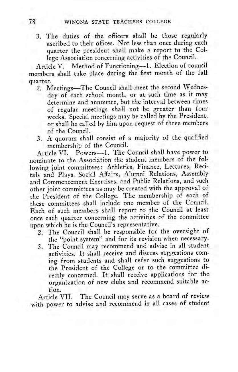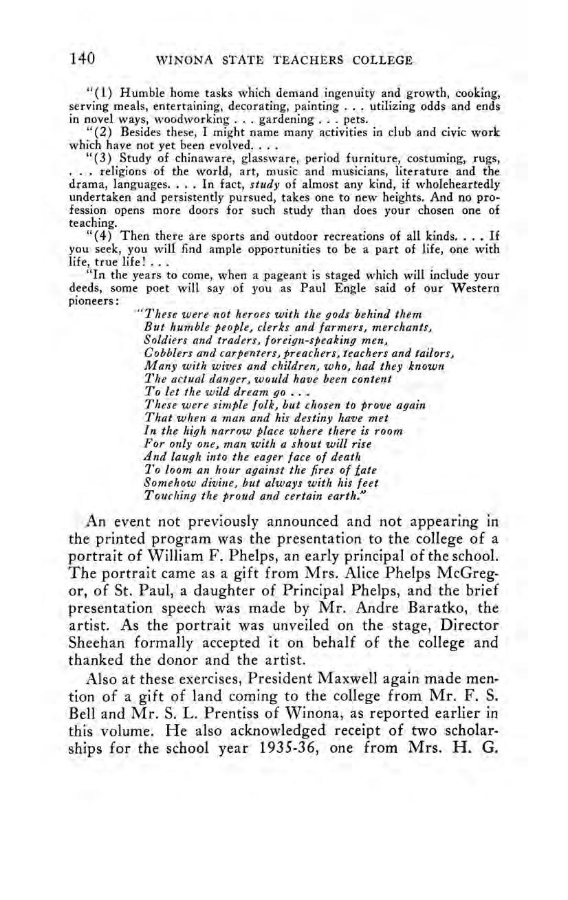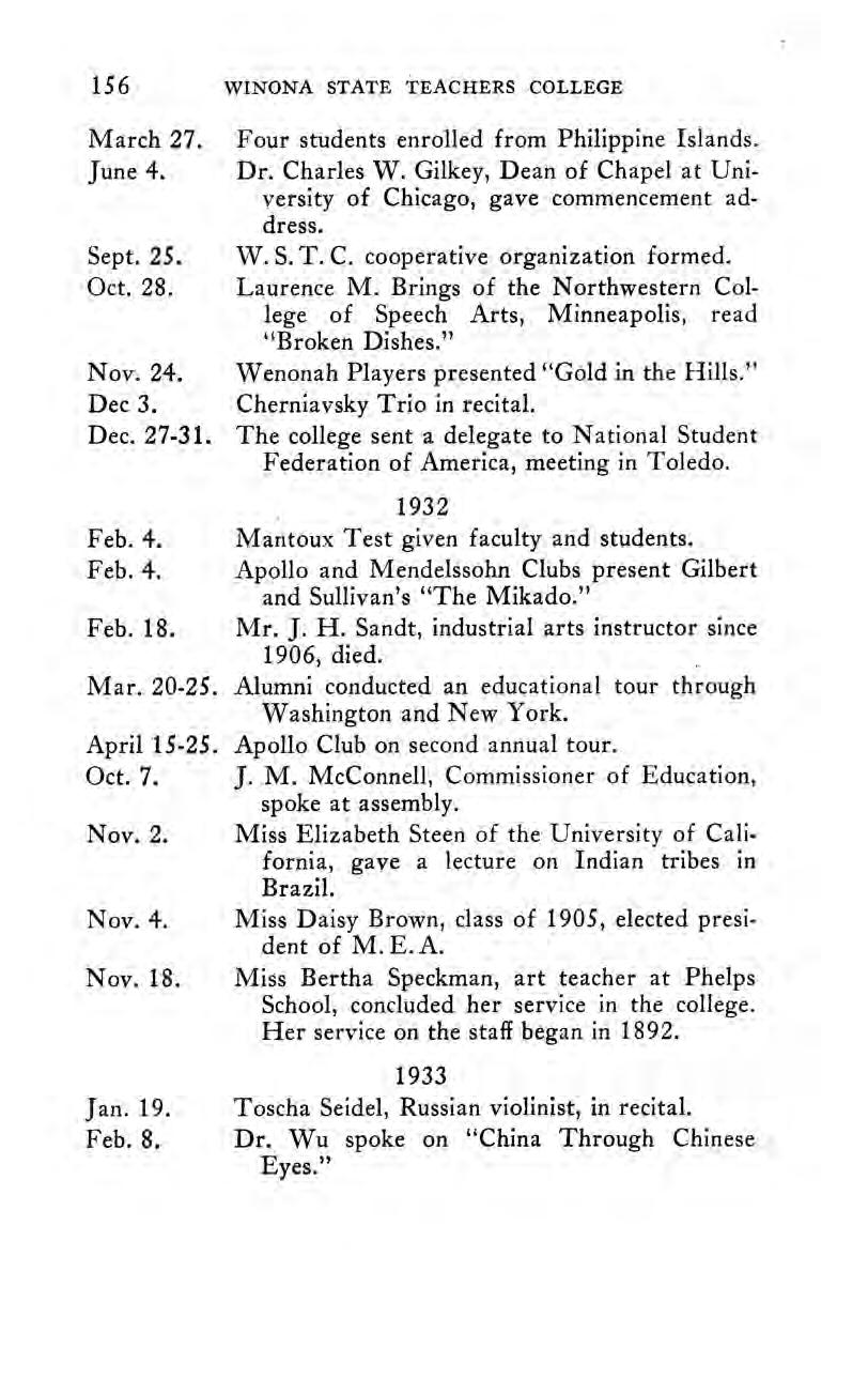 The Seventy-Fifth Anniversary Celebration A Message from Governor Floyd B. Olson. An Editorialin The Winona Republican-Herald. A Partial Chronology of Important Events, 1910-1935.