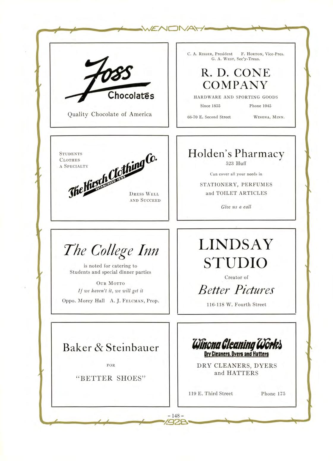 Appreciates the Hearty Patronage of Winona Teachers College Students