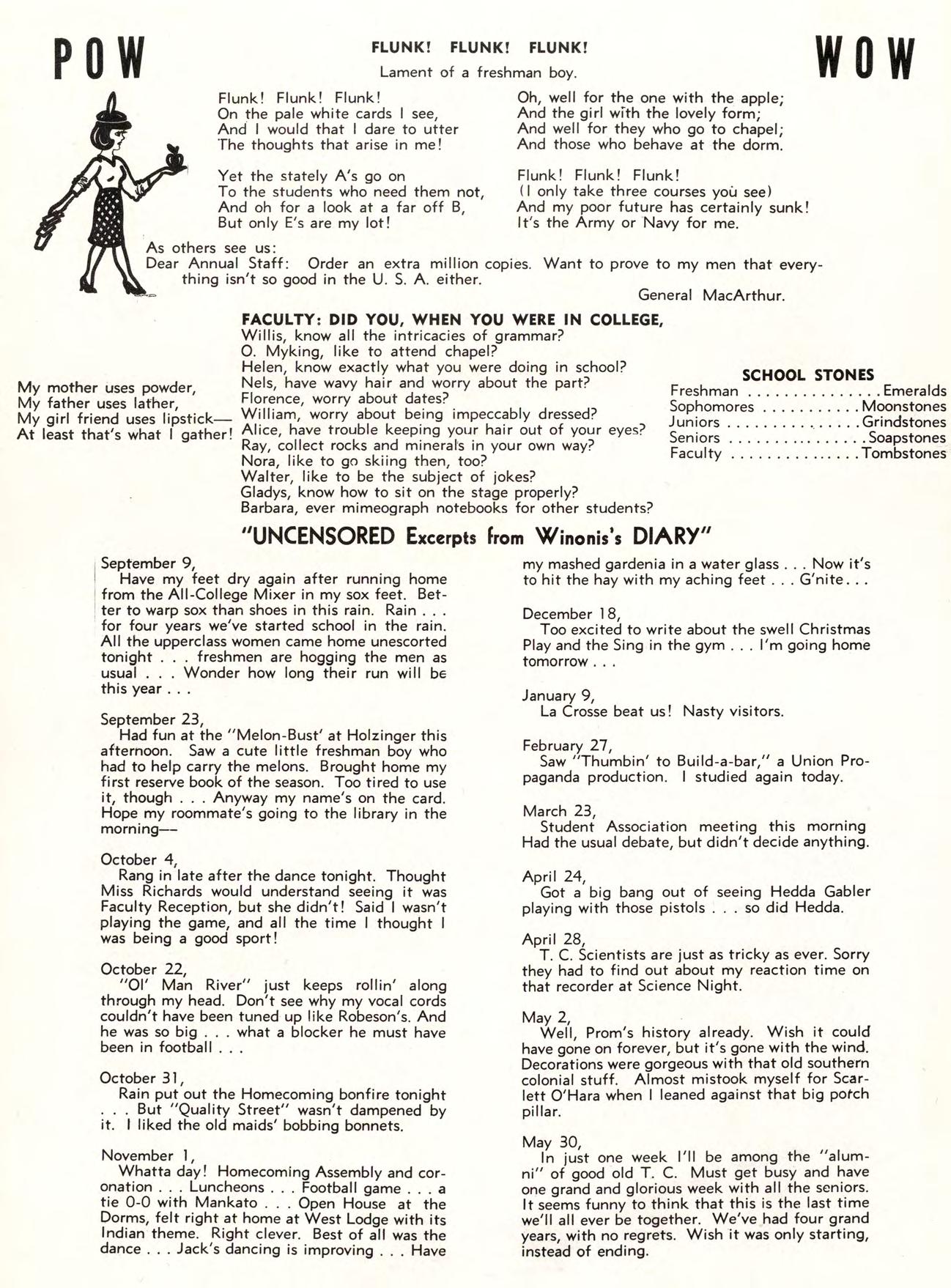 Dr. O. Myking Mehus is a worthy president of a worthy college. His friendly leadership is keeping us on theforward stride. He is vigorous and definite in his views and achieves his goals with a minimum of difficulty. His success is our success and nothing is done without a certain characteristic fellowship and feeling for the best that can come to us. We're glad to have known him.