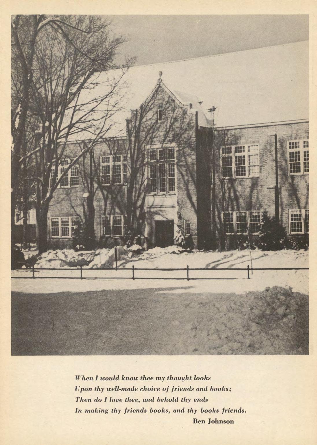 A genuine teacher challenges and guides us over the past and into the future. Just such a leader is one whose clear analysis of world events, whose understanding of human nature, andwhose awareness of world problems has made his classes of definite and lasting value to all. His rich background in history, literature, and other cultural fields are woven into ideals, interests, and problems that incite independent thinking and a consciousness of theworld in which we move. Such leadership grows and becomes enriched with the years, and thus we proudly dedicate this book to Mr. F. A. Jederman, a vital part of the warp that makes a rich fabric.