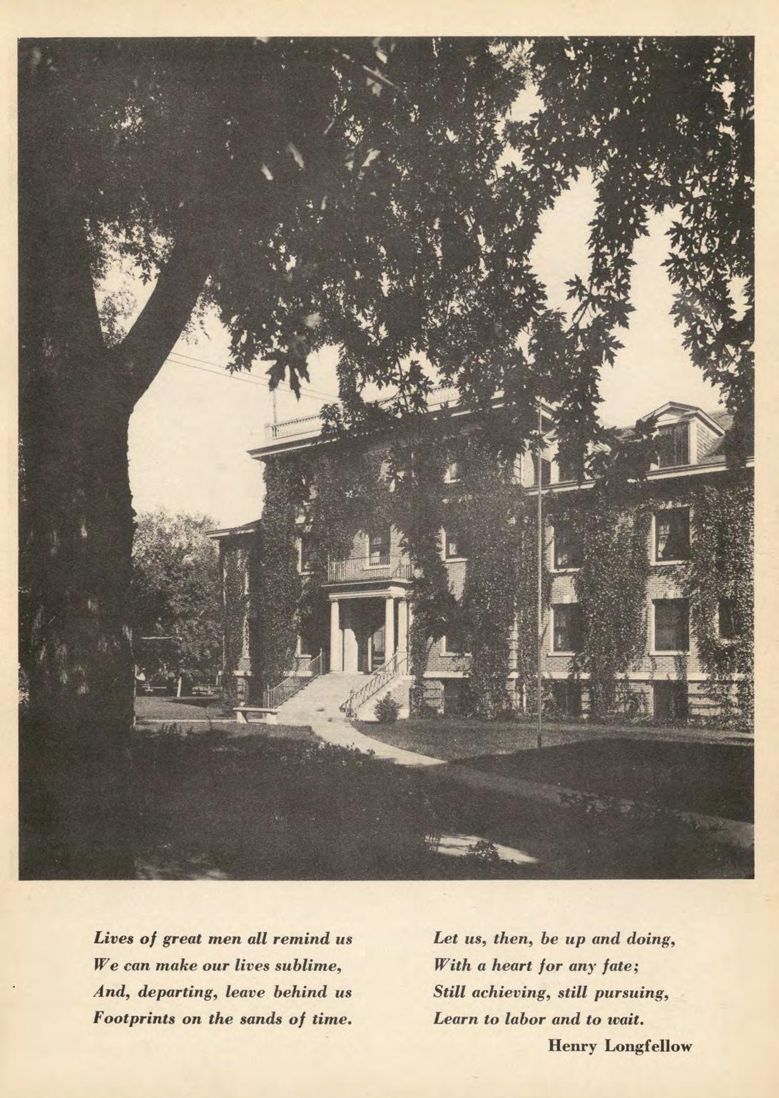 To find the most in the pictures, the studies, the work, the social gatherings, the understanding of educational problems, and the working of democracy in our school. Not to yield any memories of the campus, personnel, friendship, ambitions, high ideals, fine attitudes, and the school spirit. What one finds in this book has been done with that in mind, and a challenge is sent to those who still remain—to carry on the traditions and to build upon them a better world within our college.