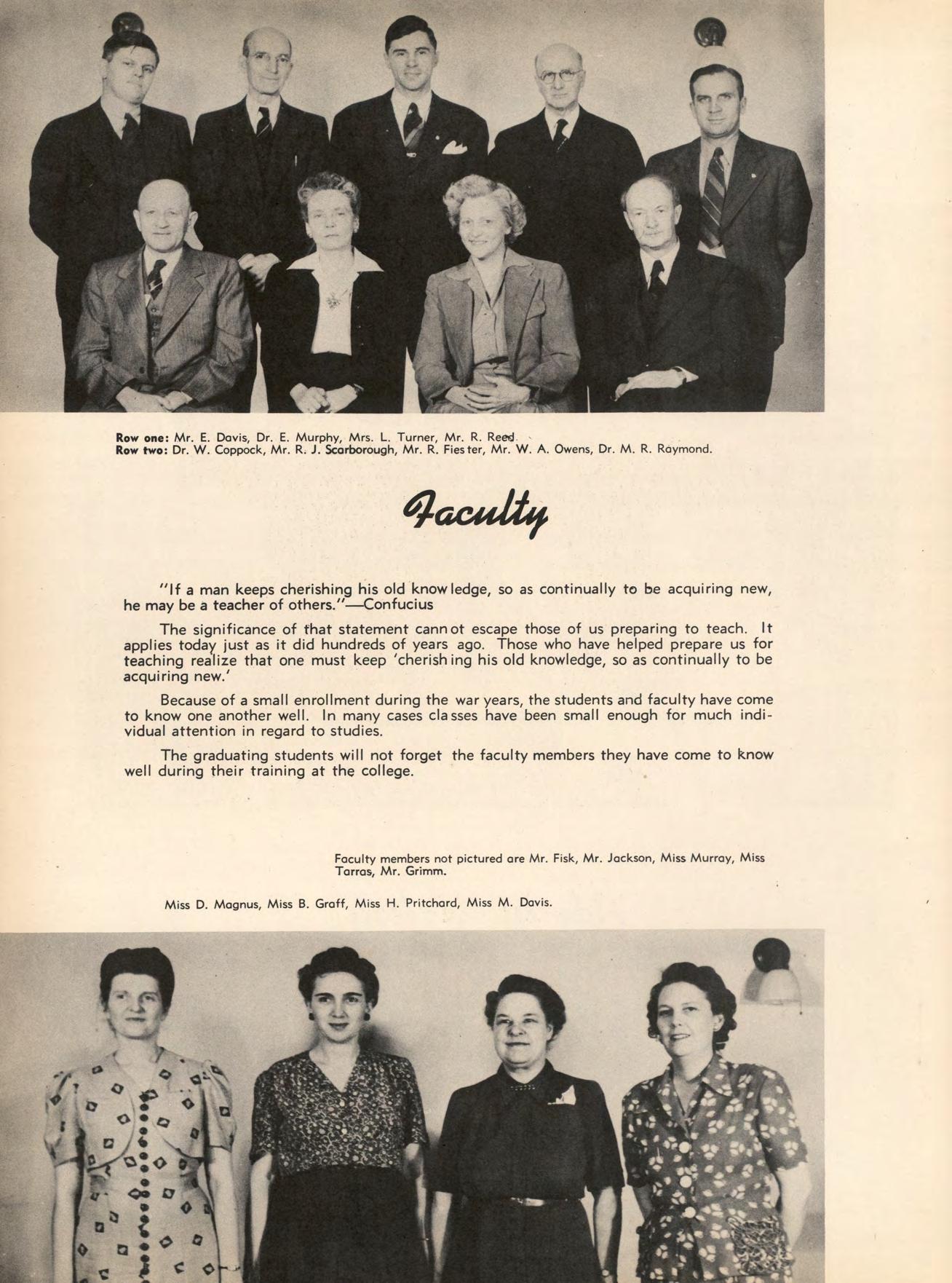 Faculty members not pictured are Mr. Fisk, Mr. Jackson, Miss Murray, Miss Tarras, Mr. Grimm.