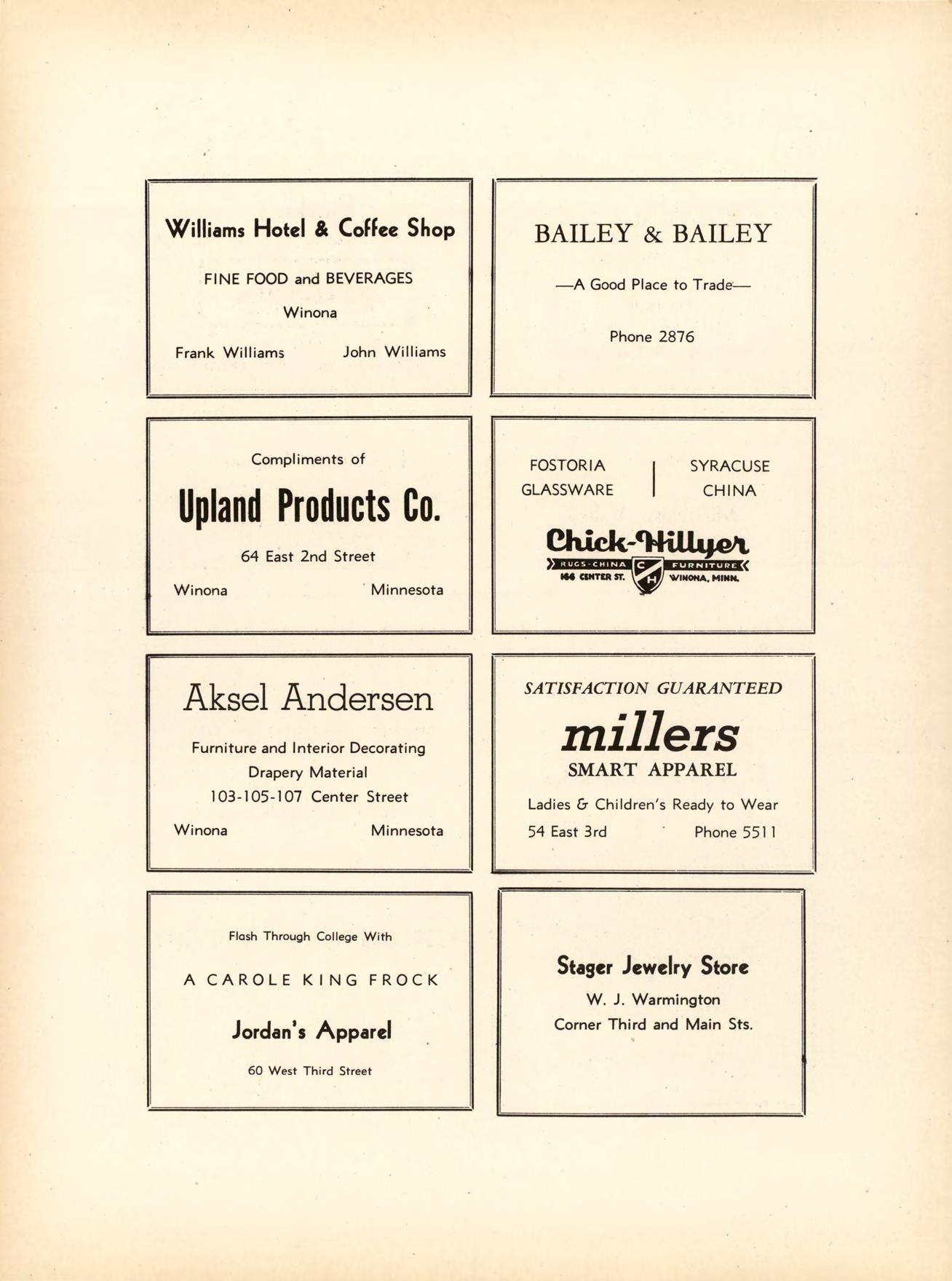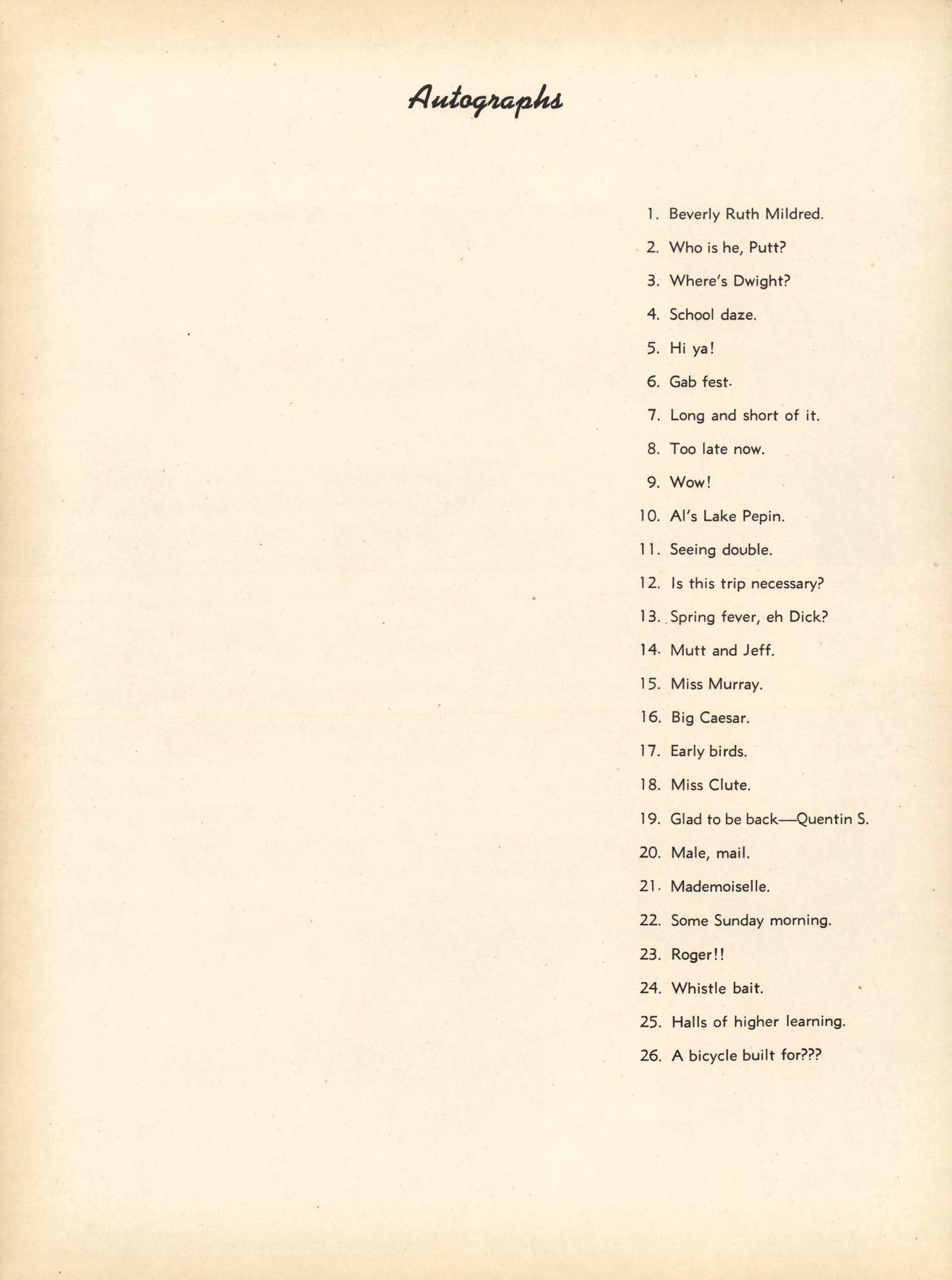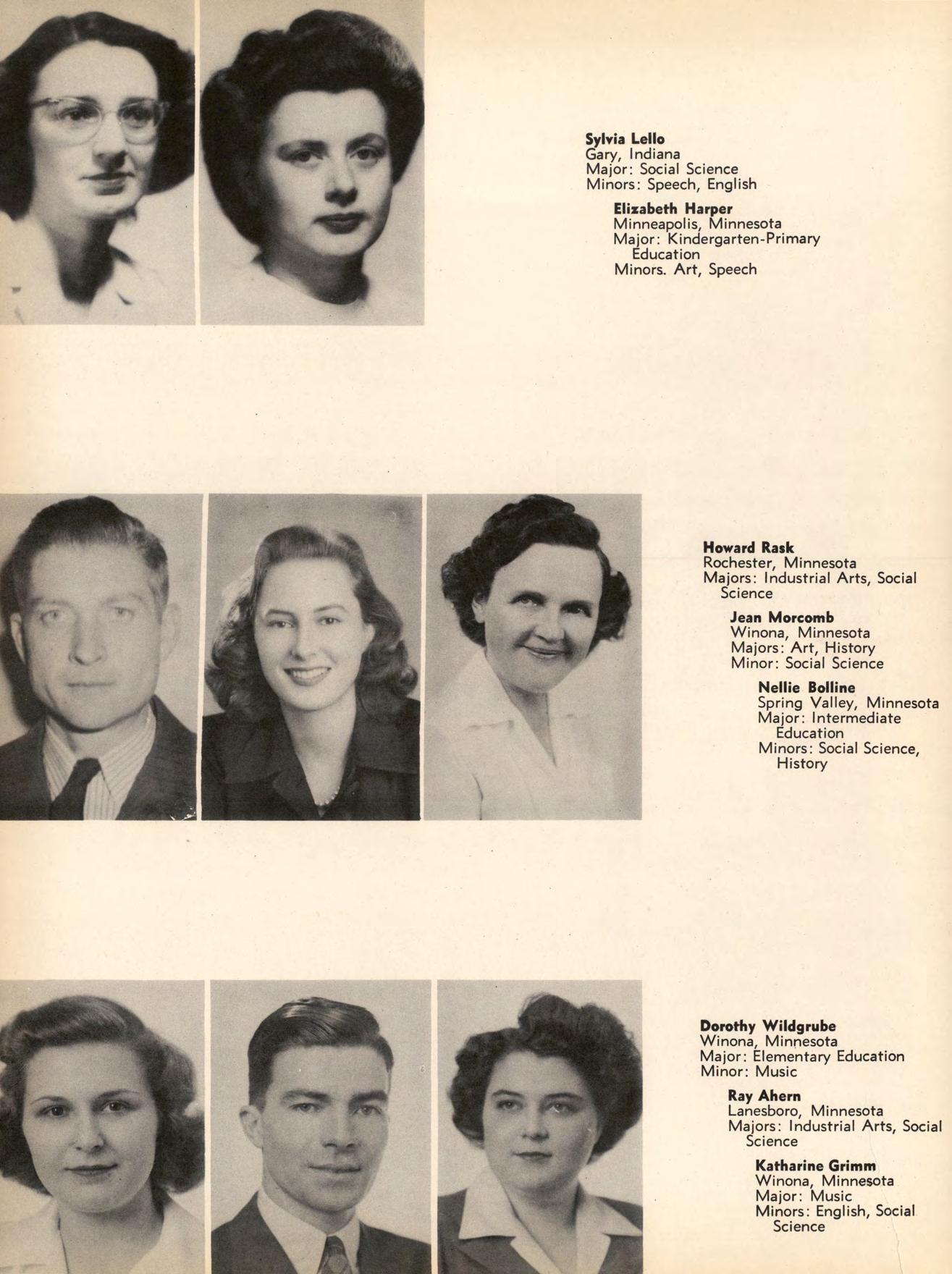 The 1945-46 school year at Winona State Teachers College will never be forgotten by its graduating classes. It was the first year of their college life in a nation at peace- It was the year the veterans came back. It was the year the long-sought student exchange became a reality. It was the year of a winter homecoming. And for the grads it was a year packed full of many little things which will never be forgotten.