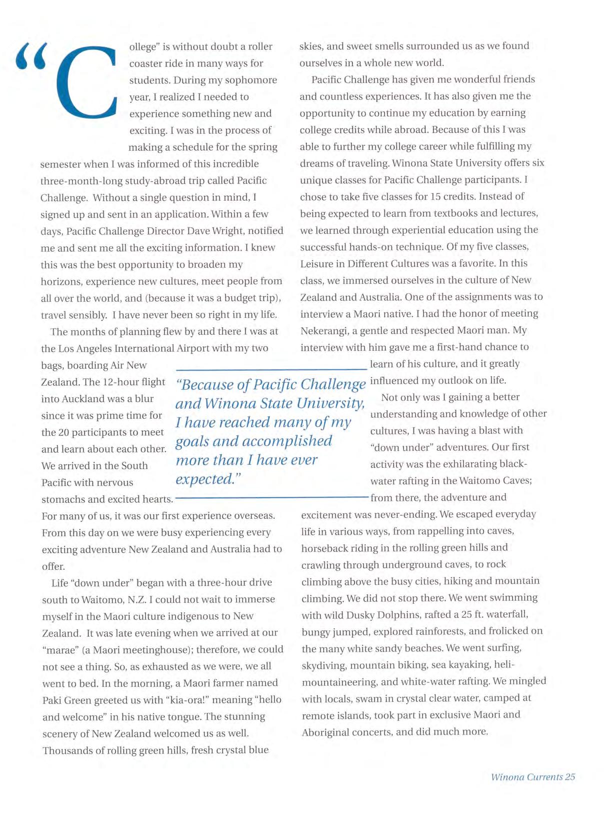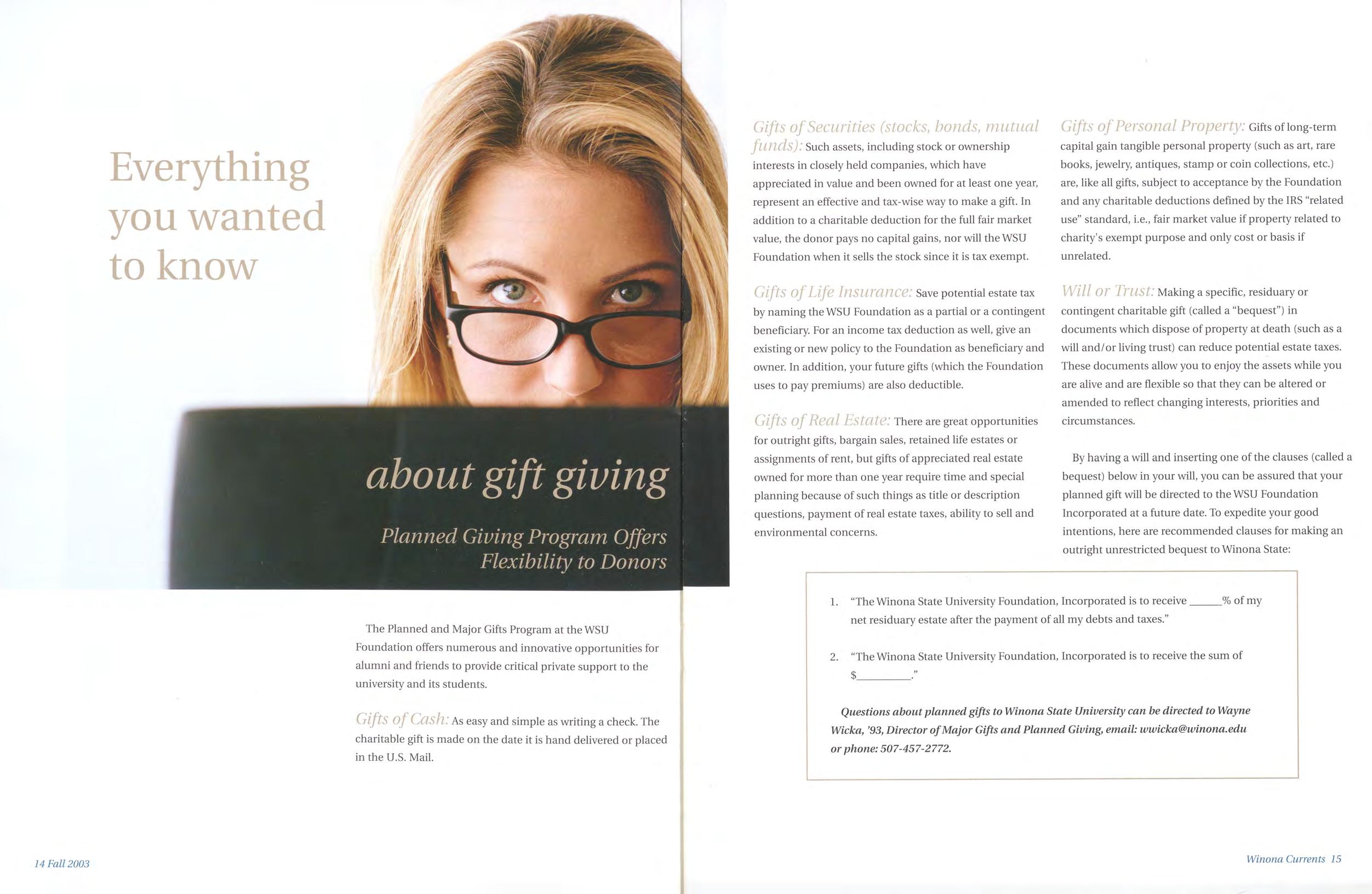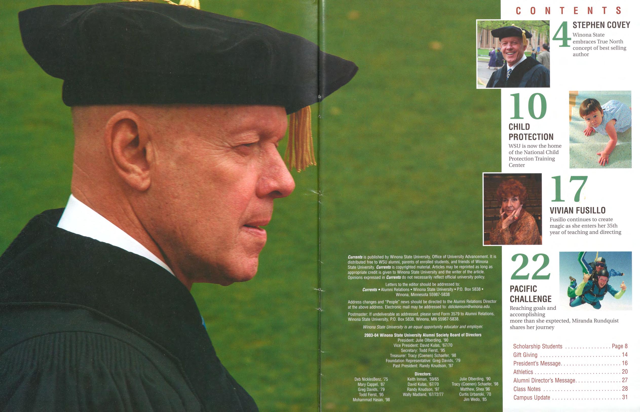 Currents is published by Winona State University, Office of University Advancement. It is distributed free to WSU alumni, parents of enrolled students, and friends of Winona State University. Currents is copyrighted material. Articles may be reprinted as long as appropriate credit is given to Winona State University and the writer of the article.