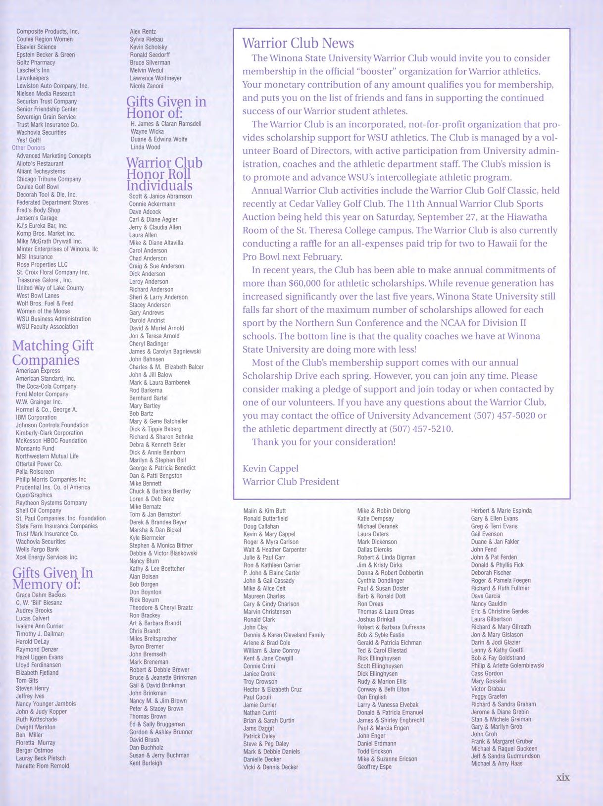“The annual phonathon is not just despite the State of Minnesota’s students are calling alumni, parents, about raising money, it’s about budget deficit and cuts in support for and friends of the university as part of connecting with alumni, parents and higher education, private support the 2003-04 WSU Annual Fund friends. It’s about getting plays a key role in continuing the Phonathon. communication out about this fine university's growth and academic Dan Schumacher, Director of old university and the continued reputation. Annual Fund activities for the Office progress of the institution,” Schumacher reminds alumni, of Advancement, said the goal is to Schumacher said. “The updates on parents, and friends to come back to reach all alumni, parents, and friends campus news, growth, and the direct Winona. of WSU in support of this campaign. results of last year’s contributions also “Come and see the campus. You will This year’s phonathon goal has been play a role in the annual phonathon.” be proud to say that WSU is part of set at $300,000. The phonathon