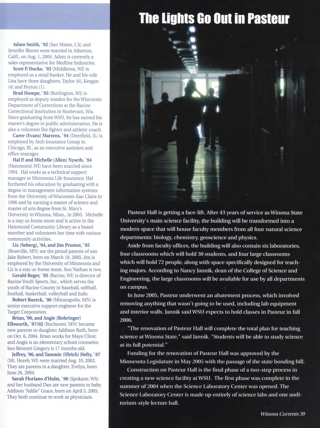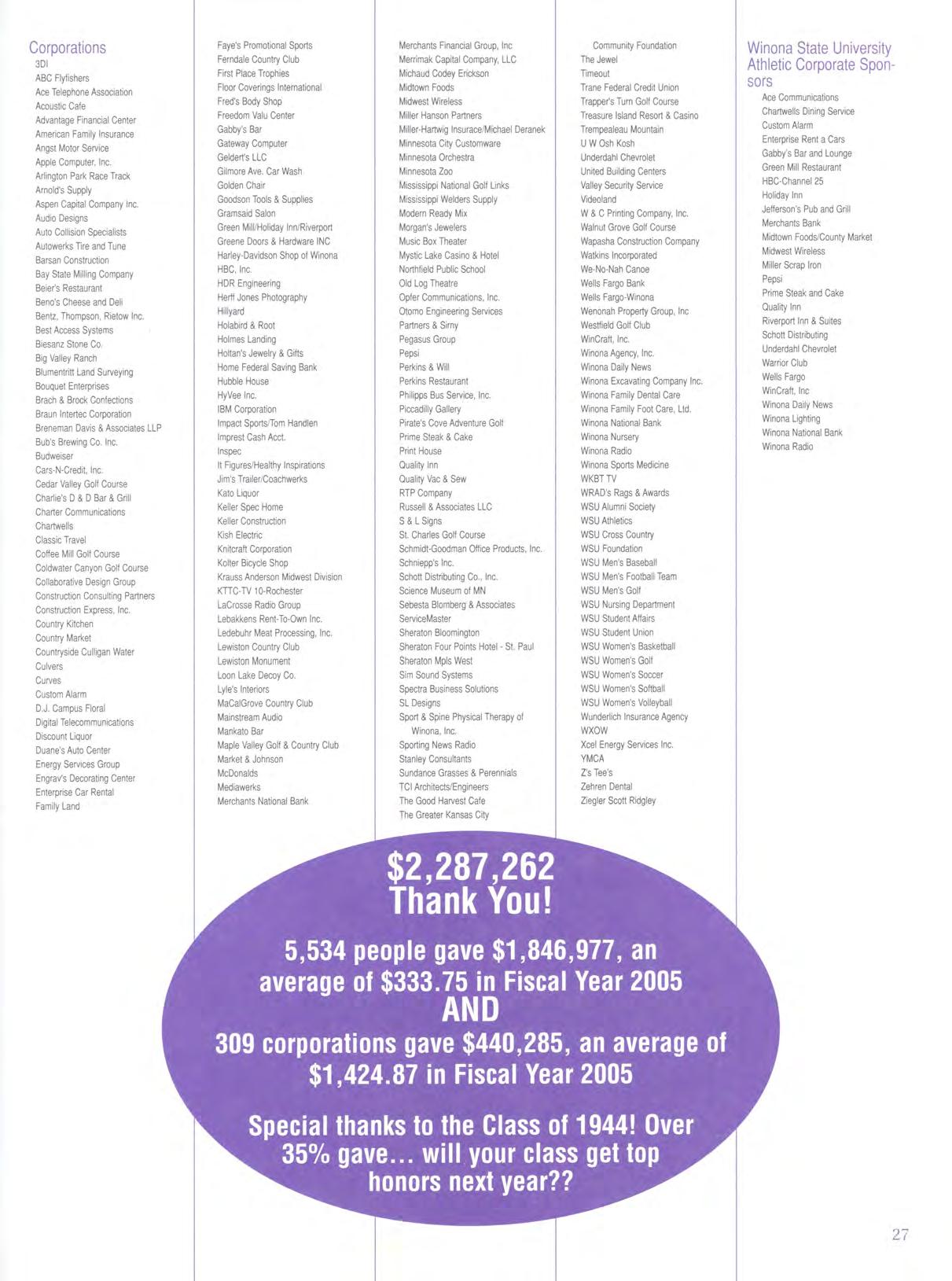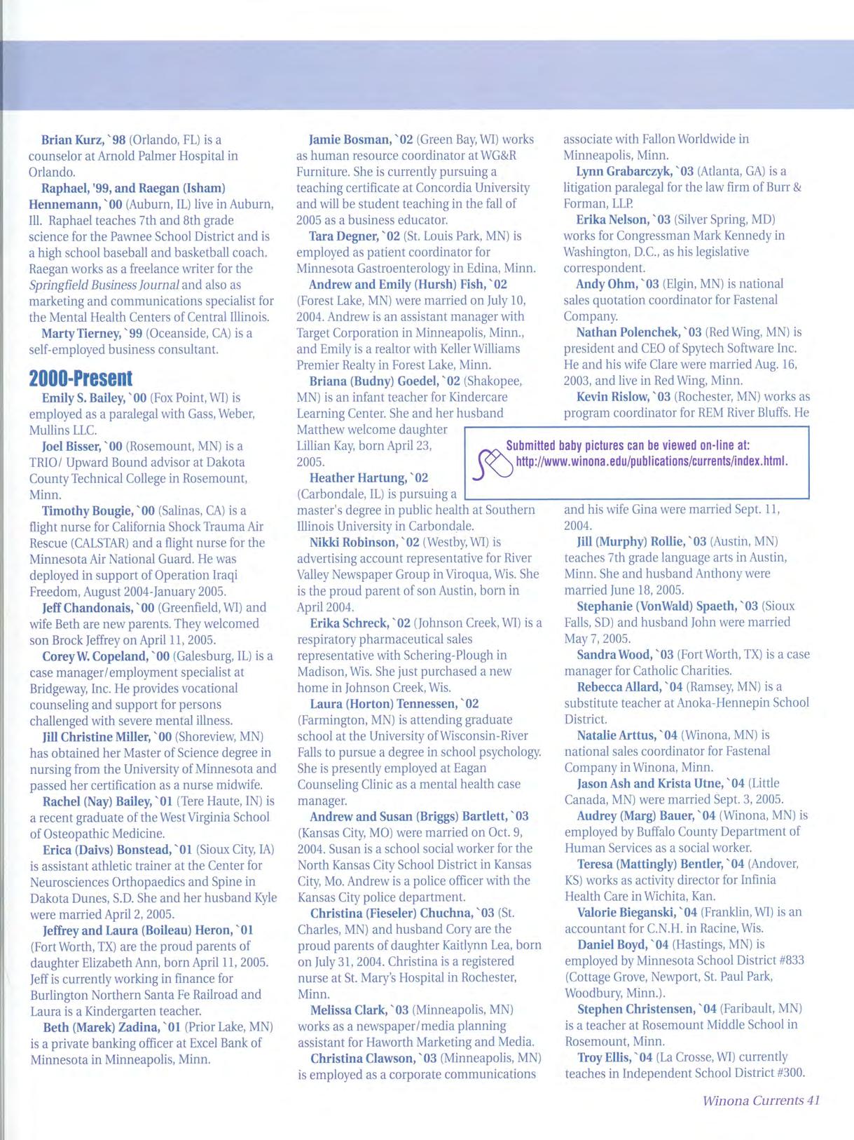 Thefollowing alumns have been inducted into the Winona State University 2005 Athletic Hall ofFame.