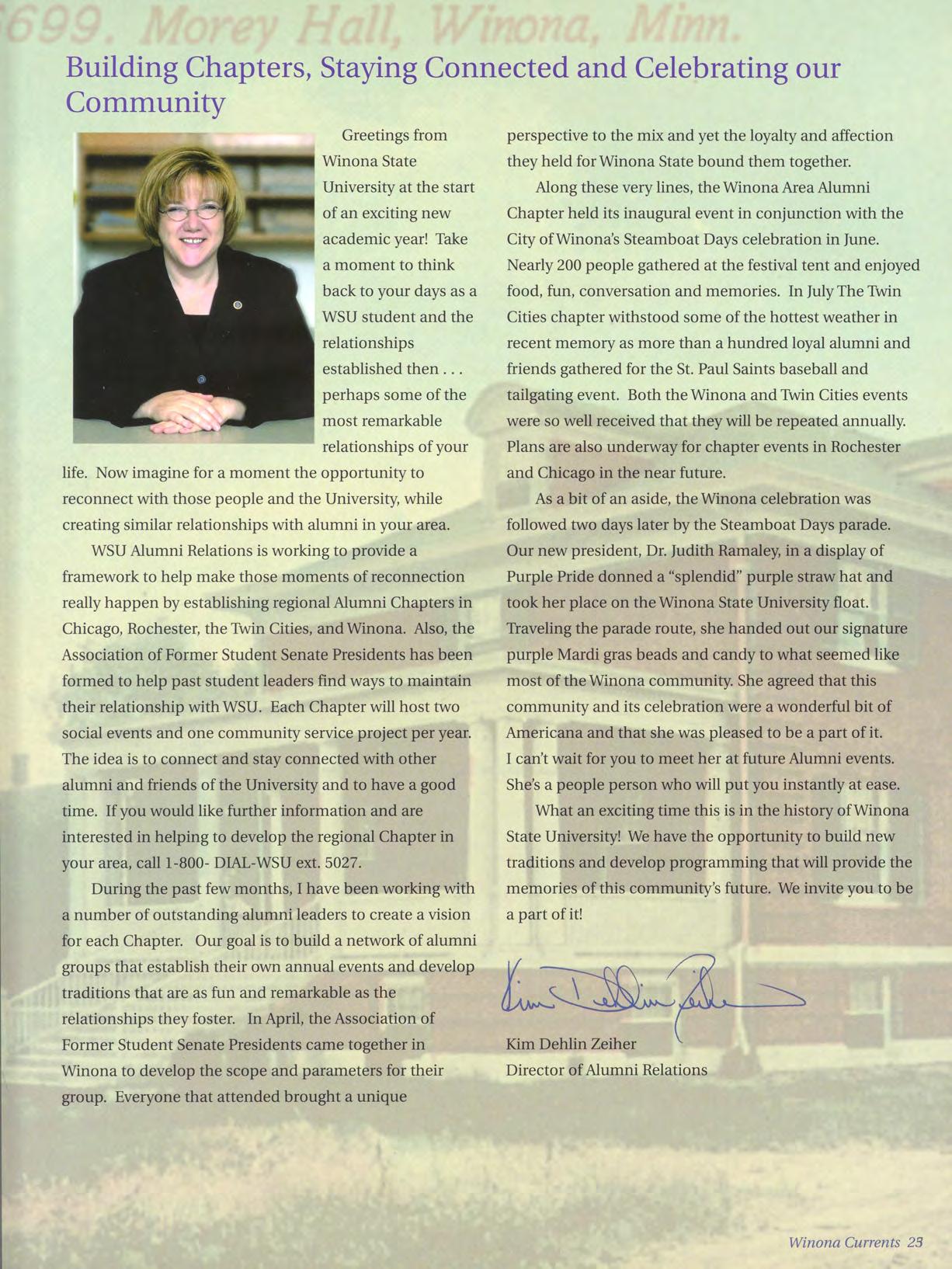 The stars continue to shine bright at Winona State University in 2005. Several star WSU alumni and community members accepted awards for their outstanding achievementsand commitment to their communities.