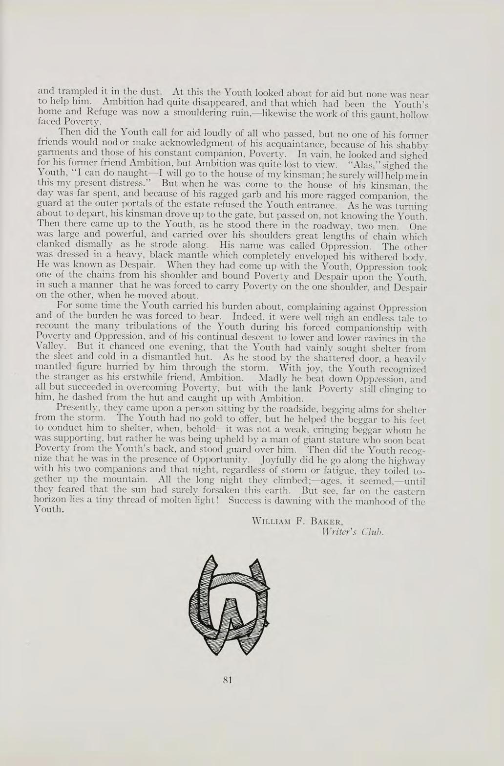 I’ve lent my mackinaw to Laura. Her room mate’s got my hat. My dress just fits a dozen more. My muff is gone at that. The class-mate sitting next to me, Borrowed my notes till ten; And now that blasted Irene Davey Has run off with my pen.
