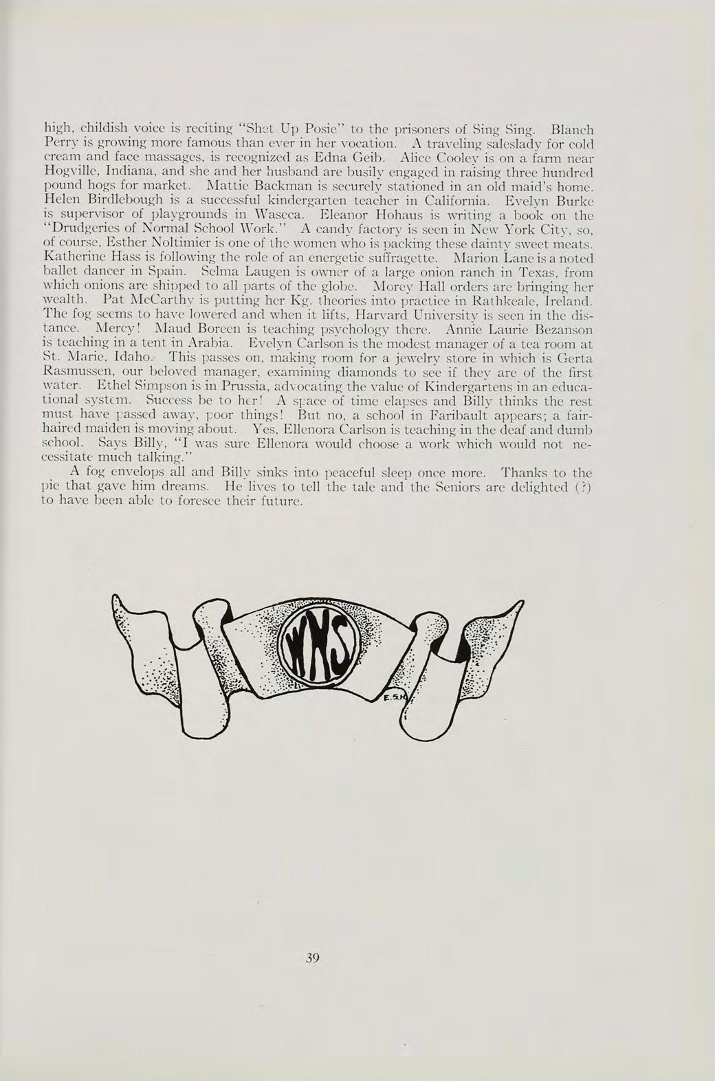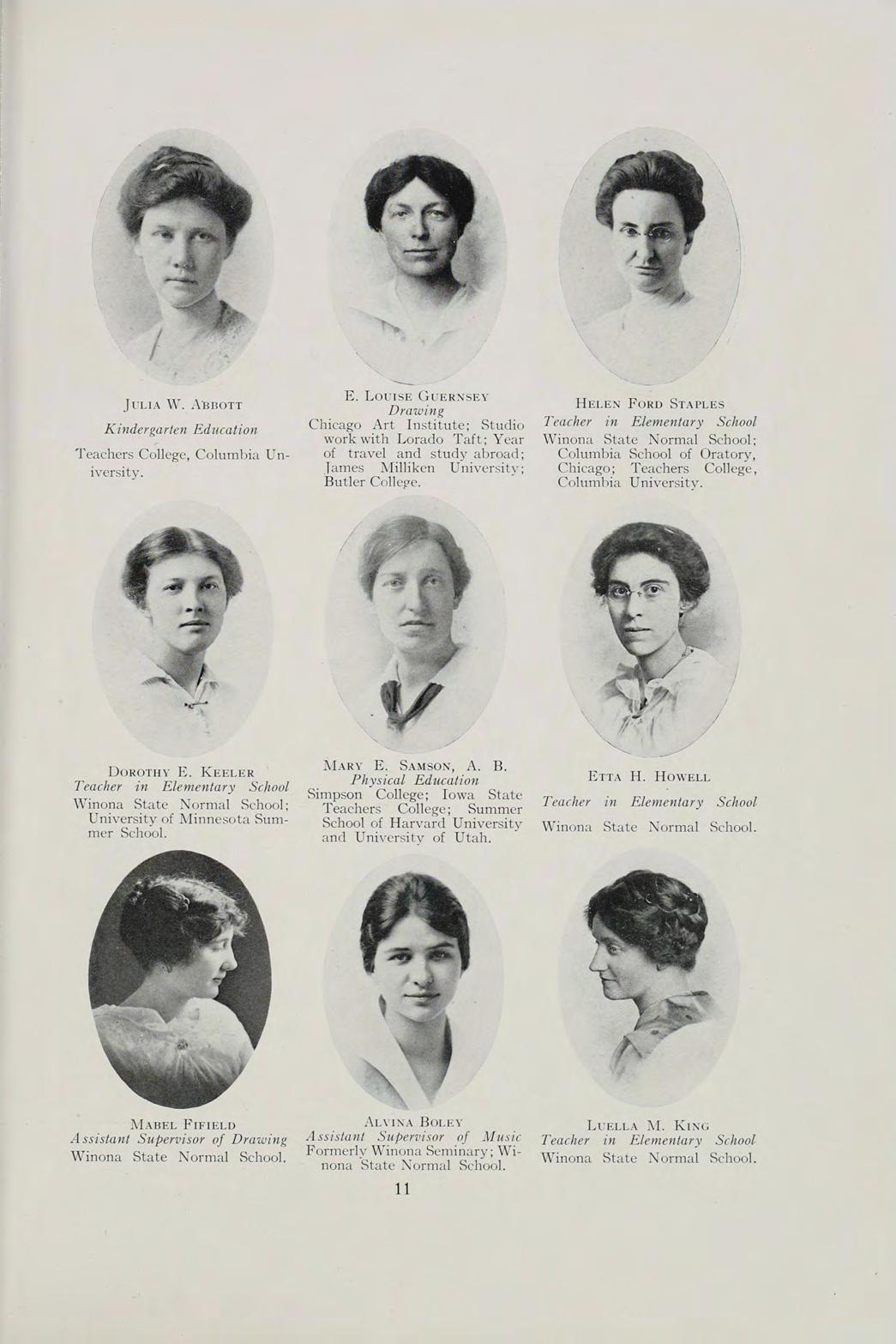 Dorothy E. Keeler Teacher in Elementary School Winona State Normal School; University of Minnesota Summer School.