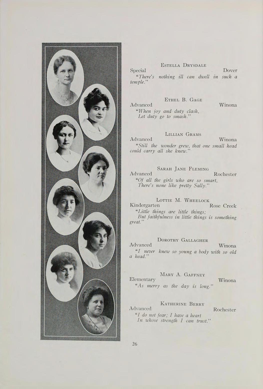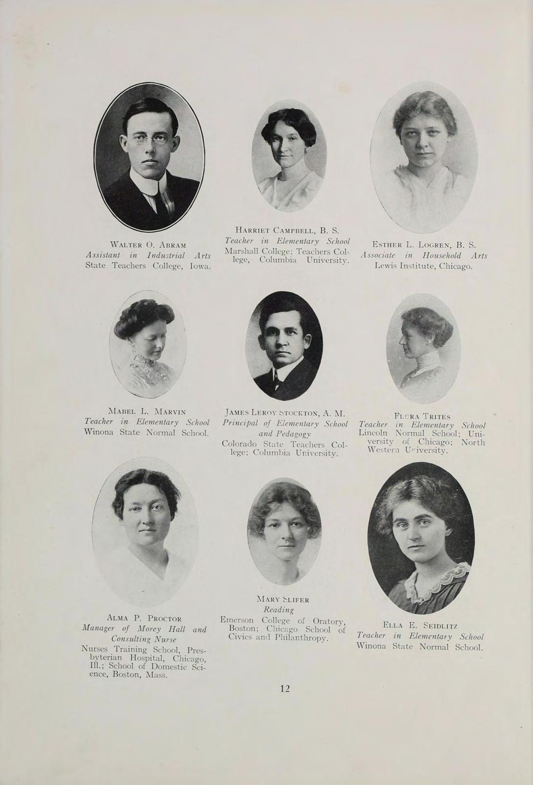 Mabel L. Marvin Teacher in Elementary School Winona State Normal School.
