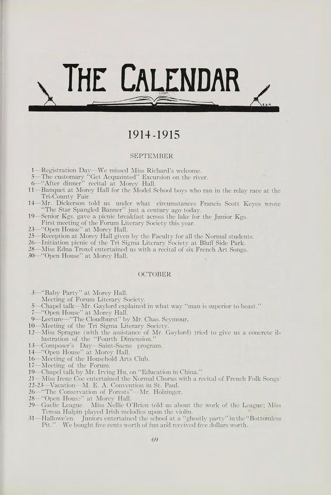 WE, the Class of Nineteen Fifteen, present the Fifth Volume of the “Wenonah” to the school and public. We hope that you will appreciate and accept the narrations of the school life,truth and fiction, contributed by our active members. Flerein, also, you may find the pictures of our dignified Faculty, renowned Seniors, and fickle Juniors, as well as the artistic drawings and cartoons which speak for themselves.