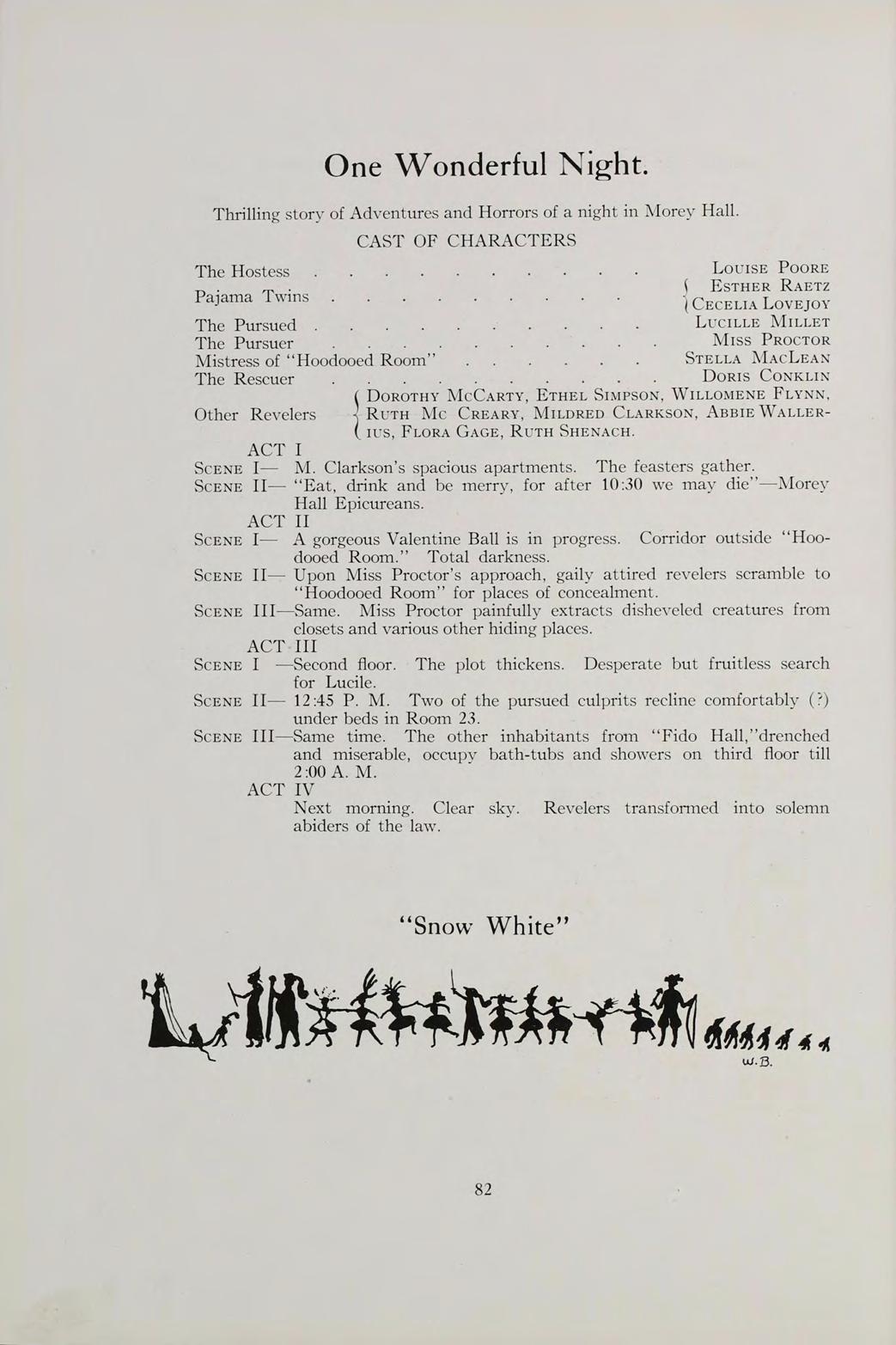 (Miss C. V. S. assigning chorus seats):—“D 9, Miss Carlson, Miss E. Carlson, the big Miss Carslon, the bigger of the two Miss Carlsons.”