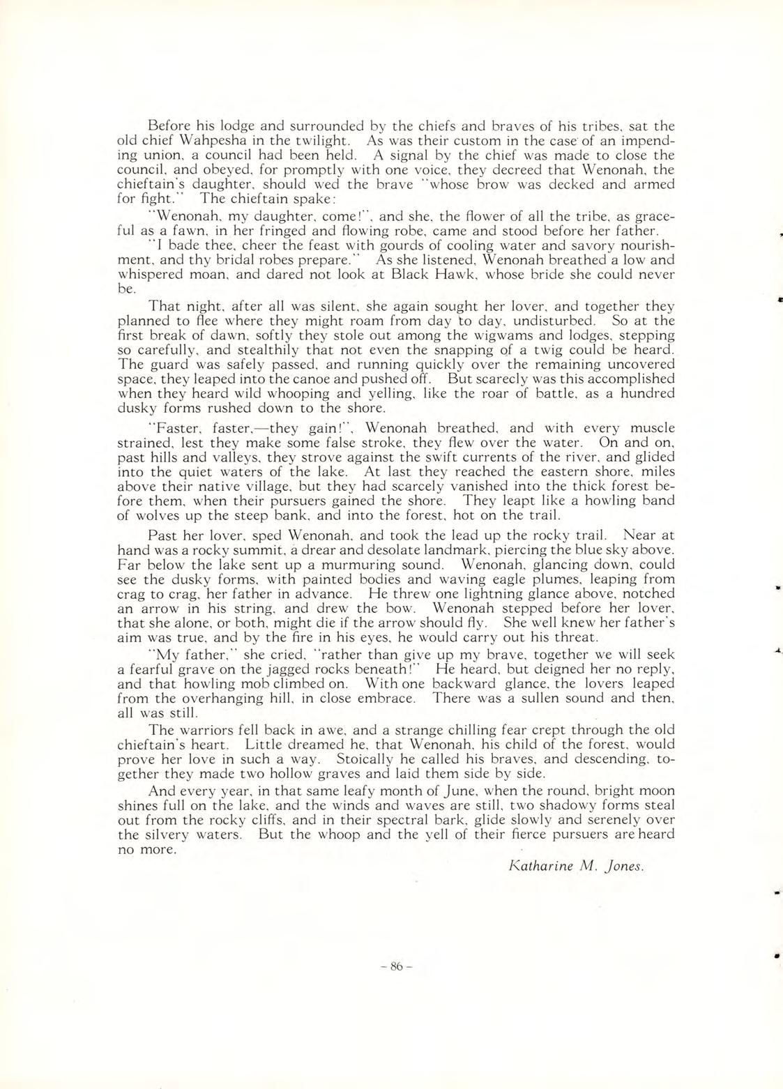 As an outlet for its vivacious spirits, the class gave various social events, one being a party to solemnize the rites of All Saints Day. Ghosts, witches, and brownies held sway and the masked audience passively did their bidding. Fates were revealed to many and each person went home joyously anticipating the future. Thus ended theirfirst enterprise. During the winter months they were entertained at many delightful affairs, but not until the balmy month of May, did their zealous spirits burst forth once more with an eager desire to plan something for the seniors. Their searching minds finally caught hold of a tangible form of entertainment; namely, a lawn party. When the day of festivity arrived, the audience, gathered on Morey Hall lawn, gazed with fascination at the dancing maidens who were dressed as groups of Dutch Maidens and Kate Greenaway girls. After this outdoor merrymaking was over, the guests were w'elcomed into the living room of Morey Hall, where delicious refreshments were served. And thus ended their second contribution to the social life of Winona Normal School.