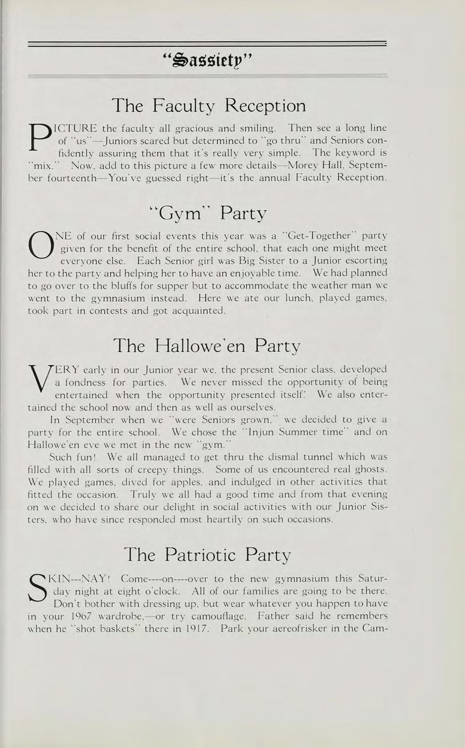 We are securely sure That when we wish to lure The folk to our successes In parties, talks, and dresses. That there will always be. The sweet smile to see, Of Mrs. Maxwell.