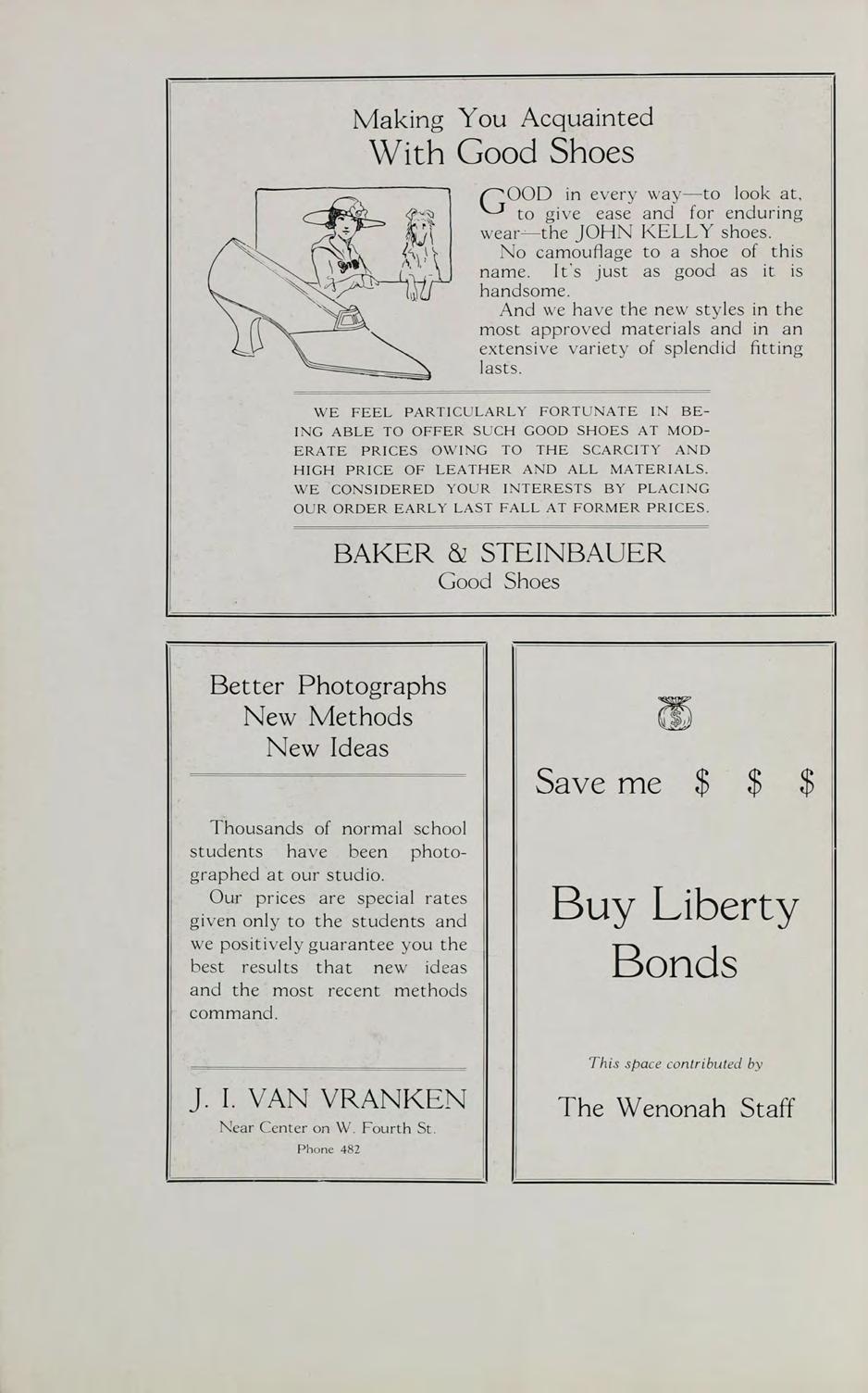 J. I. VAN VRANKEN Near Center on W. Fourth St. Phone 482 Save me $$$ Buy Liberty Bonds This space contributed by The Wenonah Staff