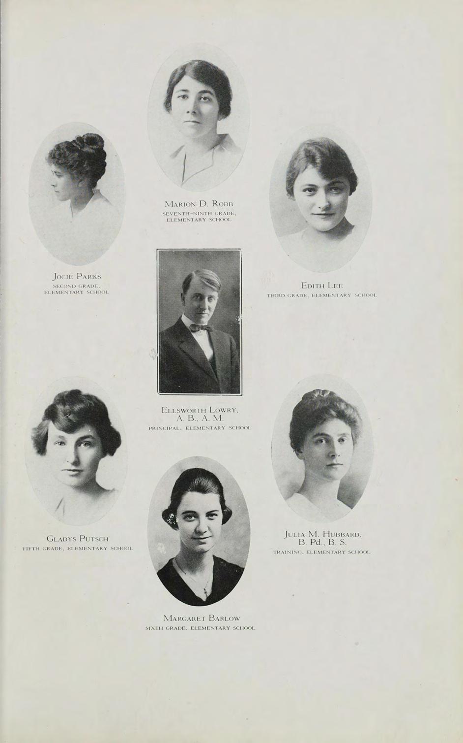 Mary Grant Bertha B. Schwable, B. S. Mary R. Slifer LIBRARIAN TRAINING, KINDERGARTEN READING Alice B. Dillon, B. S. HOME ECONOMICS Esther B. Cooley, B. S. HOME ECONOMICS Talmadge O. Dillon, A. B. PHYSICAL EDUCATION Robert R. Reed, A. B., A. M. ENGLISH Genevieve Grover, B. S. HOME ECONOMICS Louise C. Sutherland, B. S KINDERGARTEN EDUCATION Ray J. Scarborough A. B., A. M. GEOGRAPHY Blanche E. Campbell, B. S. INDUSTRIAL ART Marie Couter SECRETARY Alma P Proctor Helen B. Pritchard MANAGER MOREY HALL CONSULTING NURSE TEXTBOOK LIBRARIAN Helen Ford Staples E. Catherine Burkholder Alvina M. Boley TRAINING, ELEMENTARY SCHOOL TRAINING, ELEMENTARY SCHOOL MUSIC, ELEMENTARY SCHOOL Marion John Atwood. A. B., A. M. HISTORY AND SOCIOLOGY Ethel M. Orr, B. S. TRAINING, ELEMENTARY SCHOOL Violet M. Melander SEVENTH-NINTH GRADES ELEANOR HoHAUS ELEMENTARY SCHOOL FIRST GRADE, ELEMENTARY SCHOOL Marion D. Robb SEVENTH-NINTH GRADE, ELEMENTARY SCHOOL Jocie Parks SECOND GRADE. ELEMENTARY SCHOOL Gladys Putsch FIFTH GRADE, ELEMENTARY SCHOOL Julia M. Hubbard. B. Pd.. B. S. TRAINING, ELEMENTARY SCHOOL Margaret Barlow SIXTH GRADE, ELEMENTARY SCHOOL