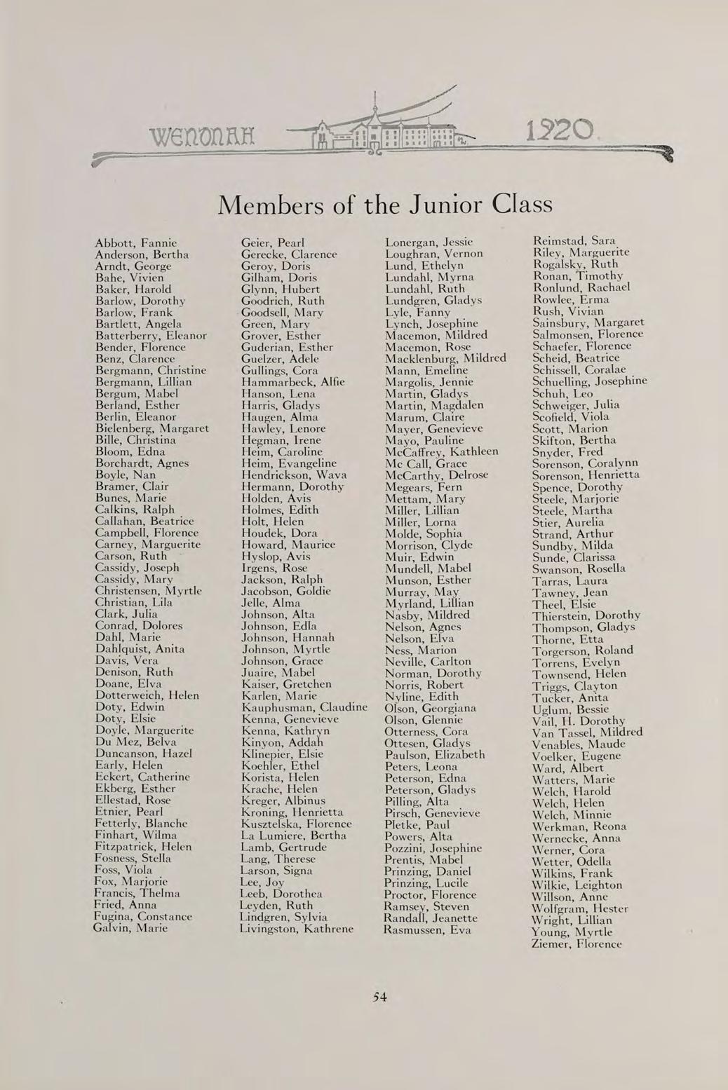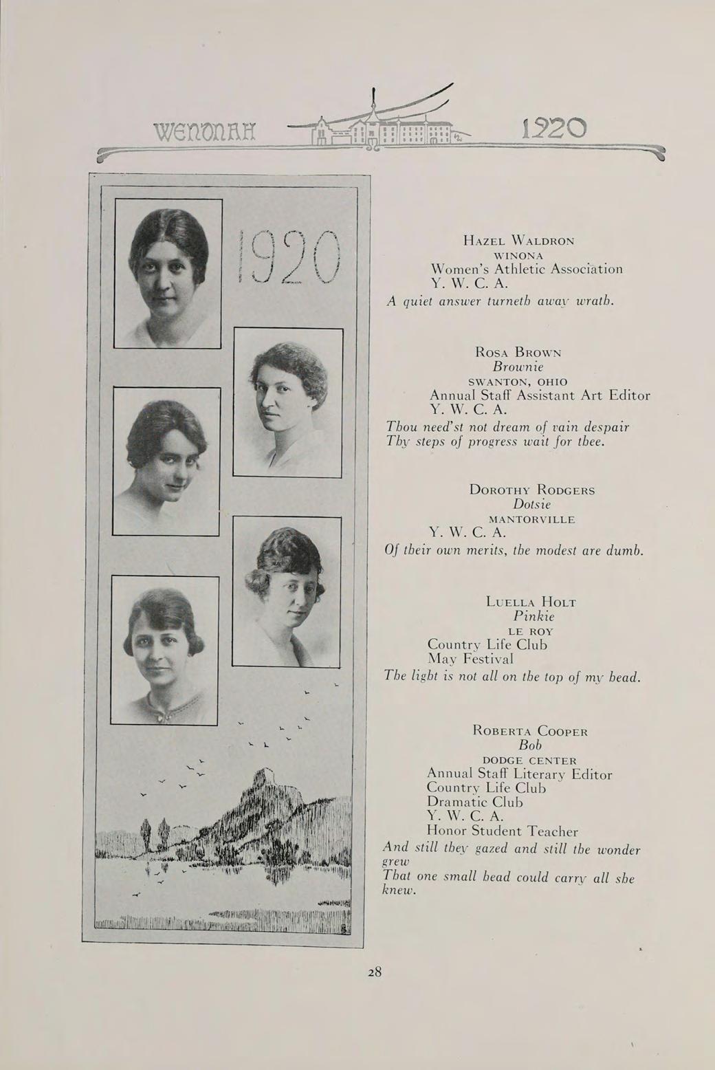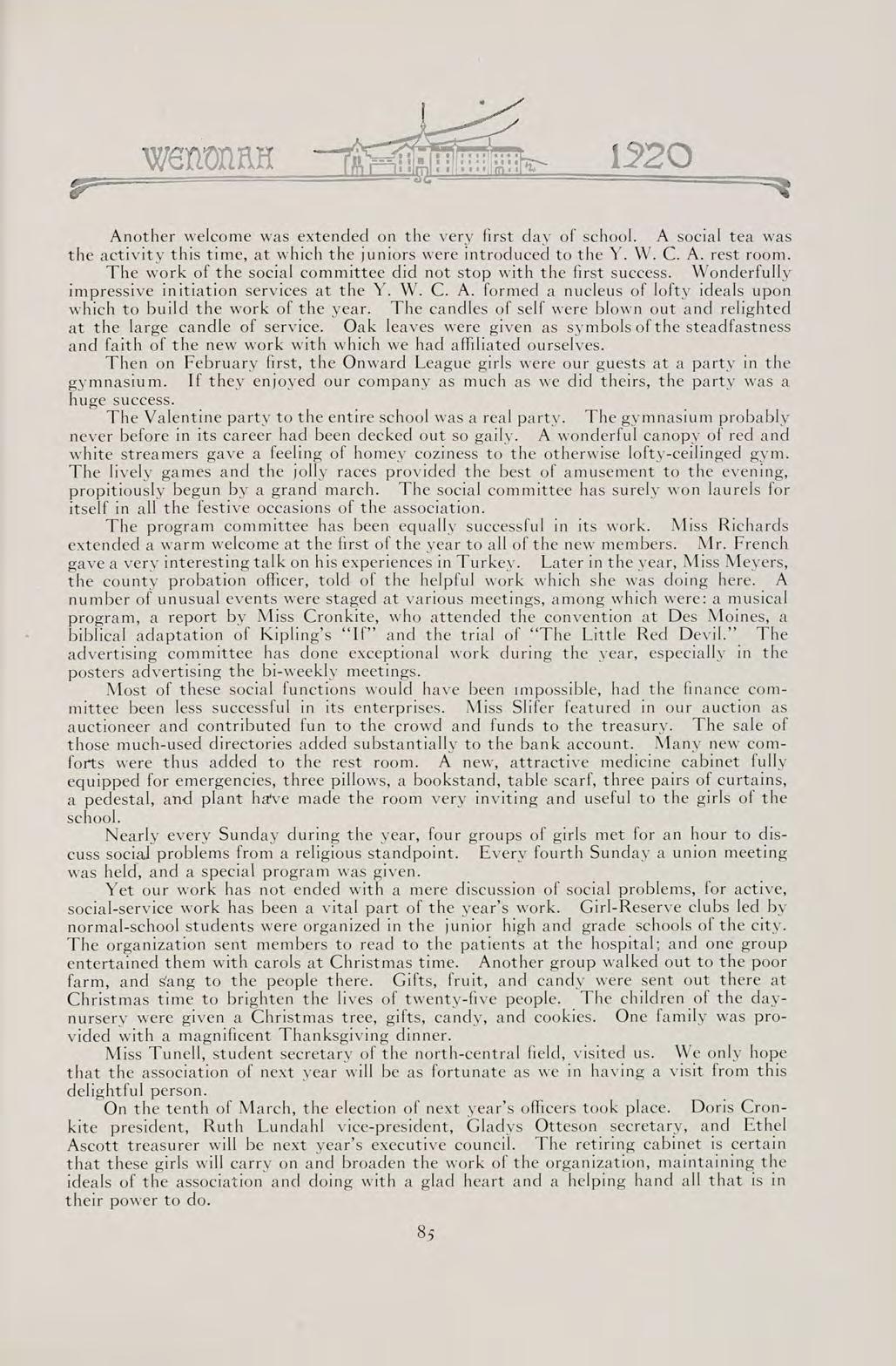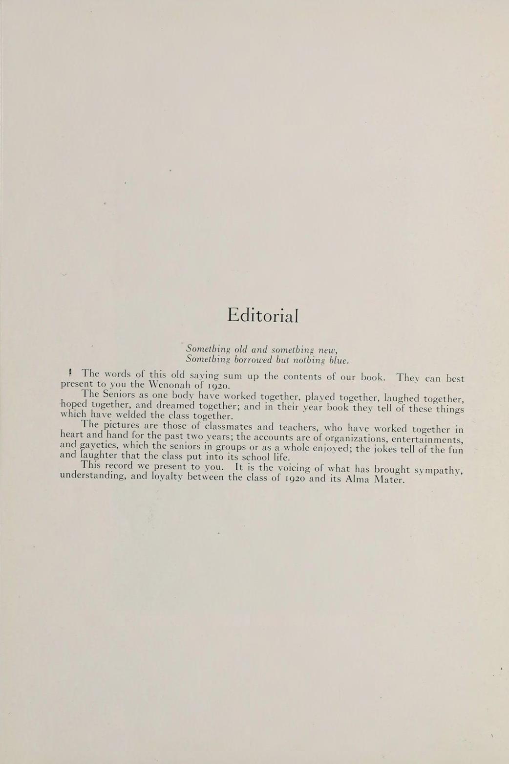 S The words of this old saying sum up the contents of our book. They can best present to you the Wenonah of 1920.