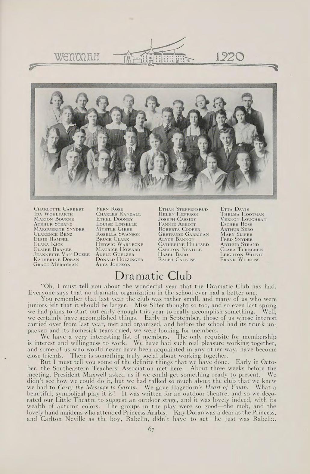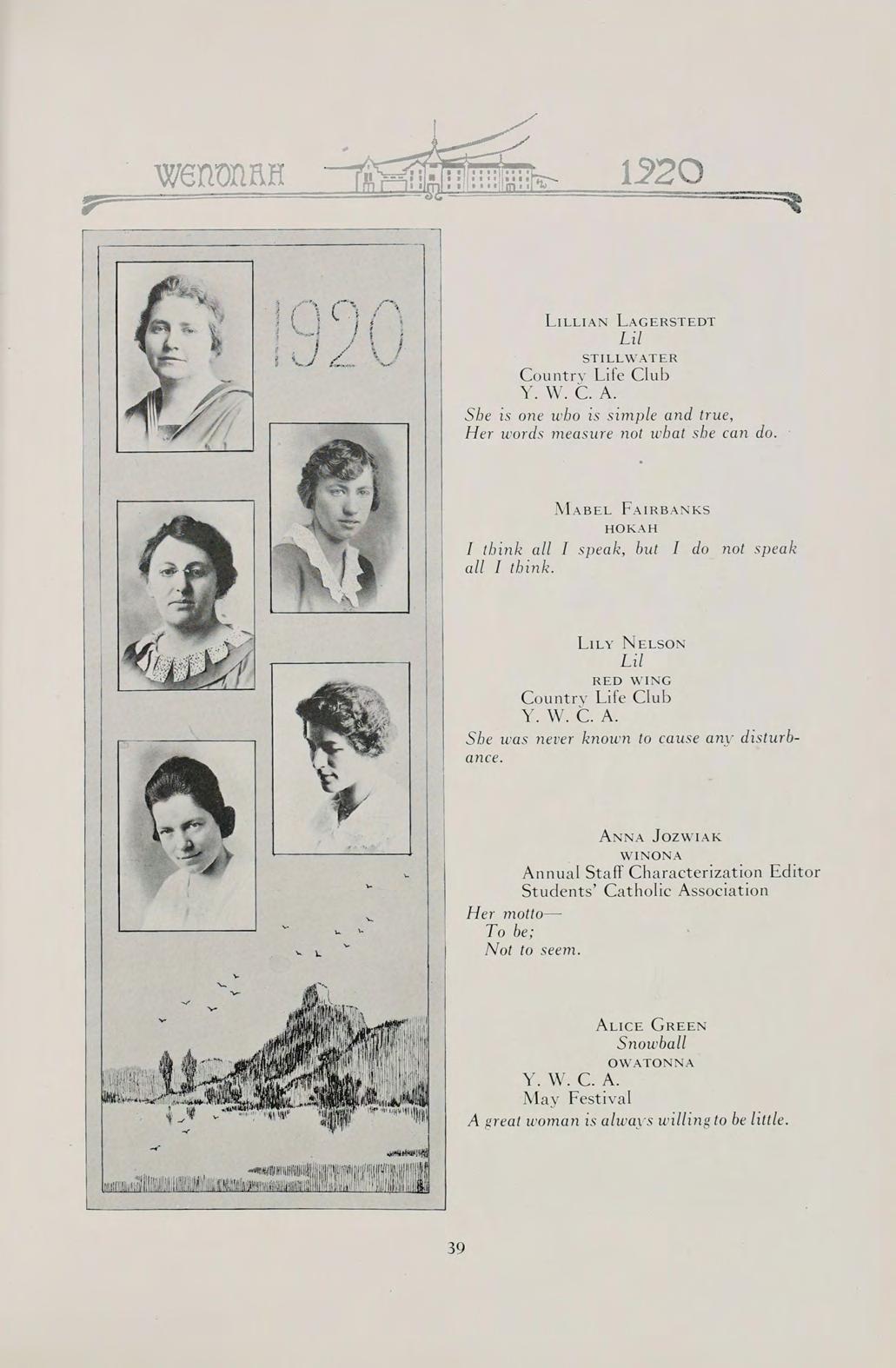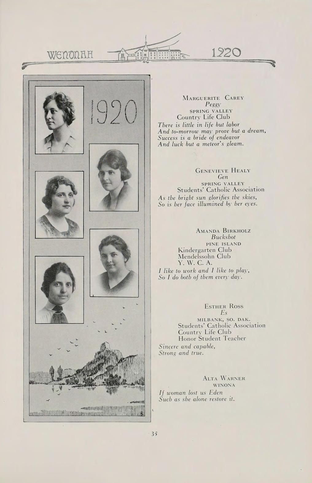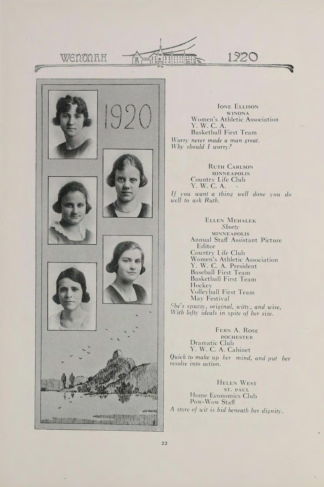 S The words of this old saying sum up the contents of our book. They can best present to you the Wenonah of 1920.