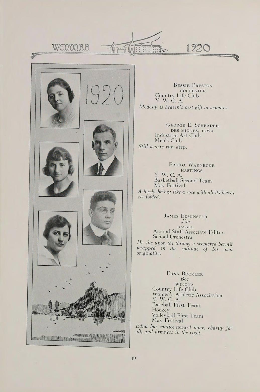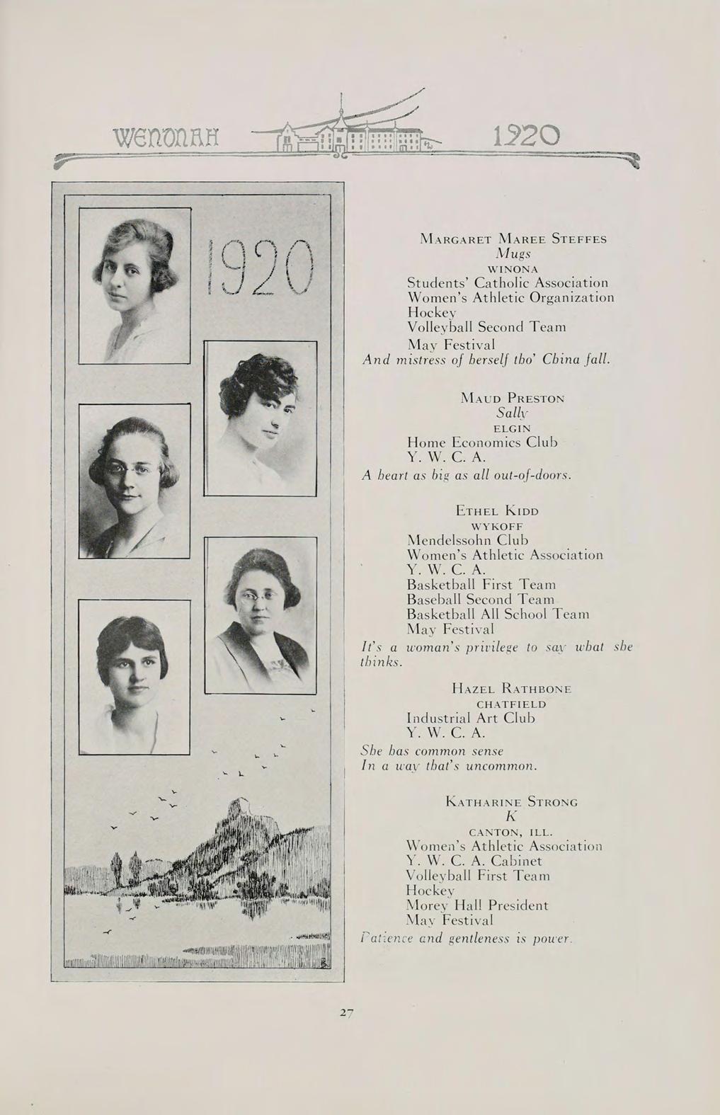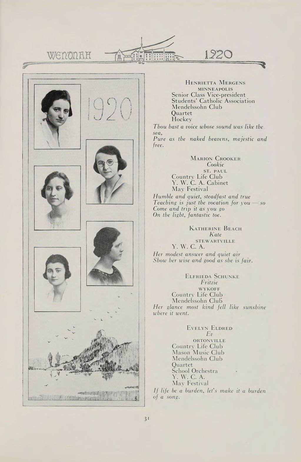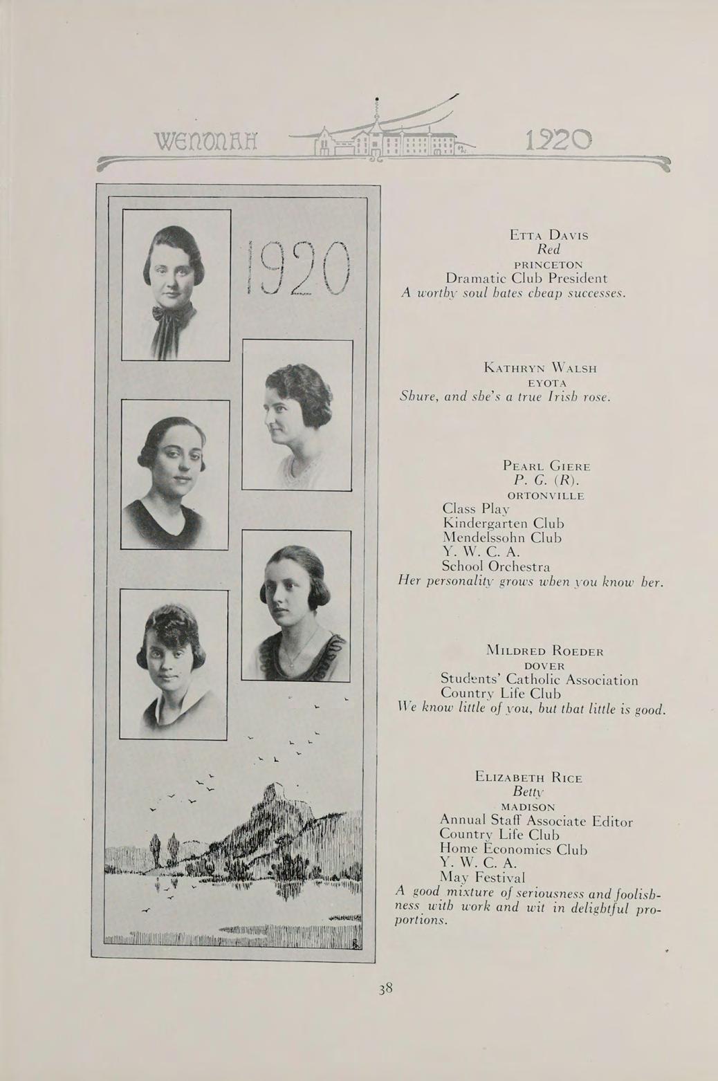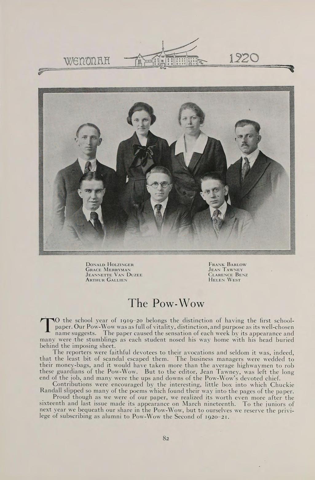 S The words of this old saying sum up the contents of our book. They can best present to you the Wenonah of 1920.